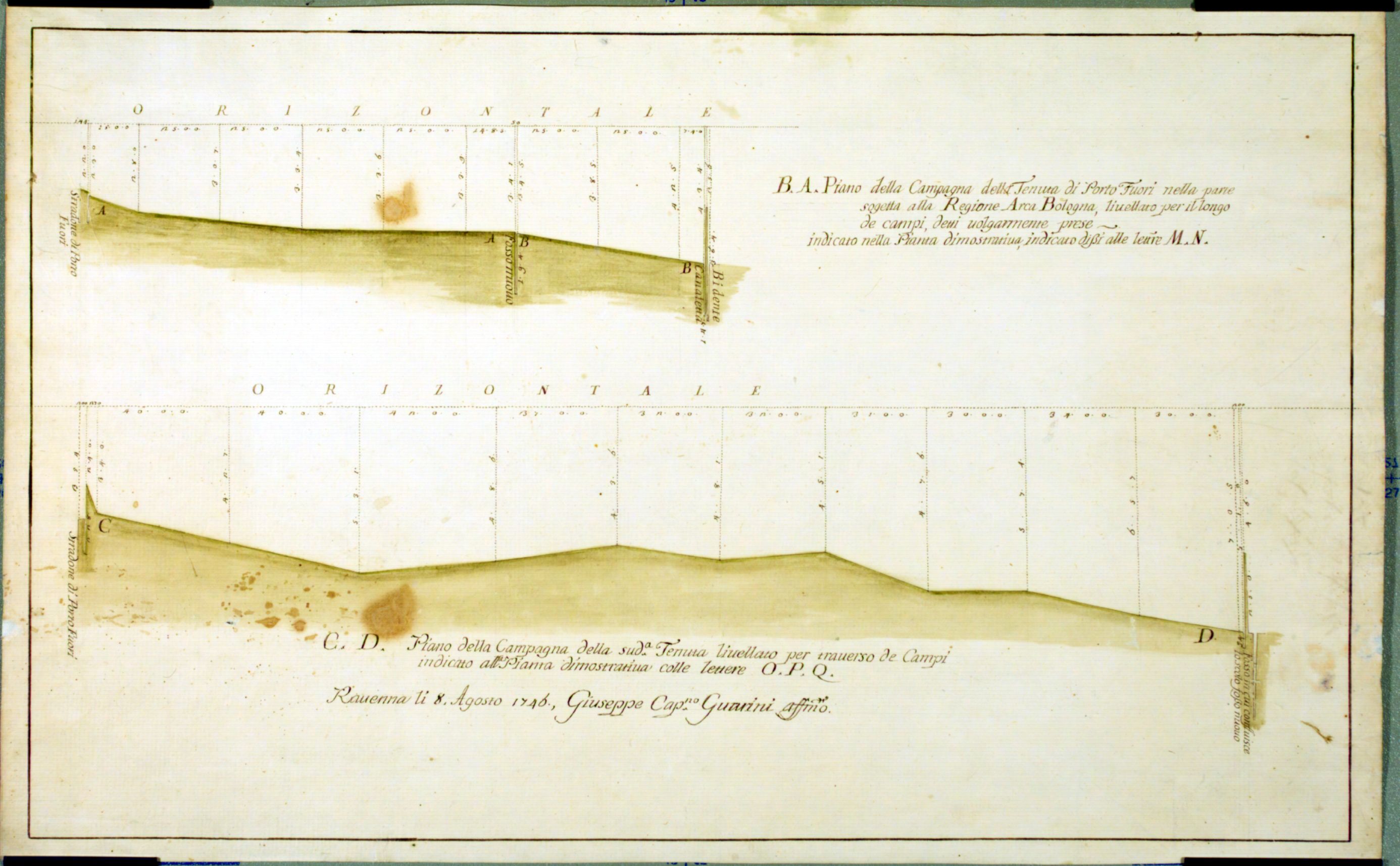 Piano della campagna della Tenuta di Porto Fuori nella parte soggetta alla Regione Arcabologna livellato per il lungo dei campi detti volgarmente prese