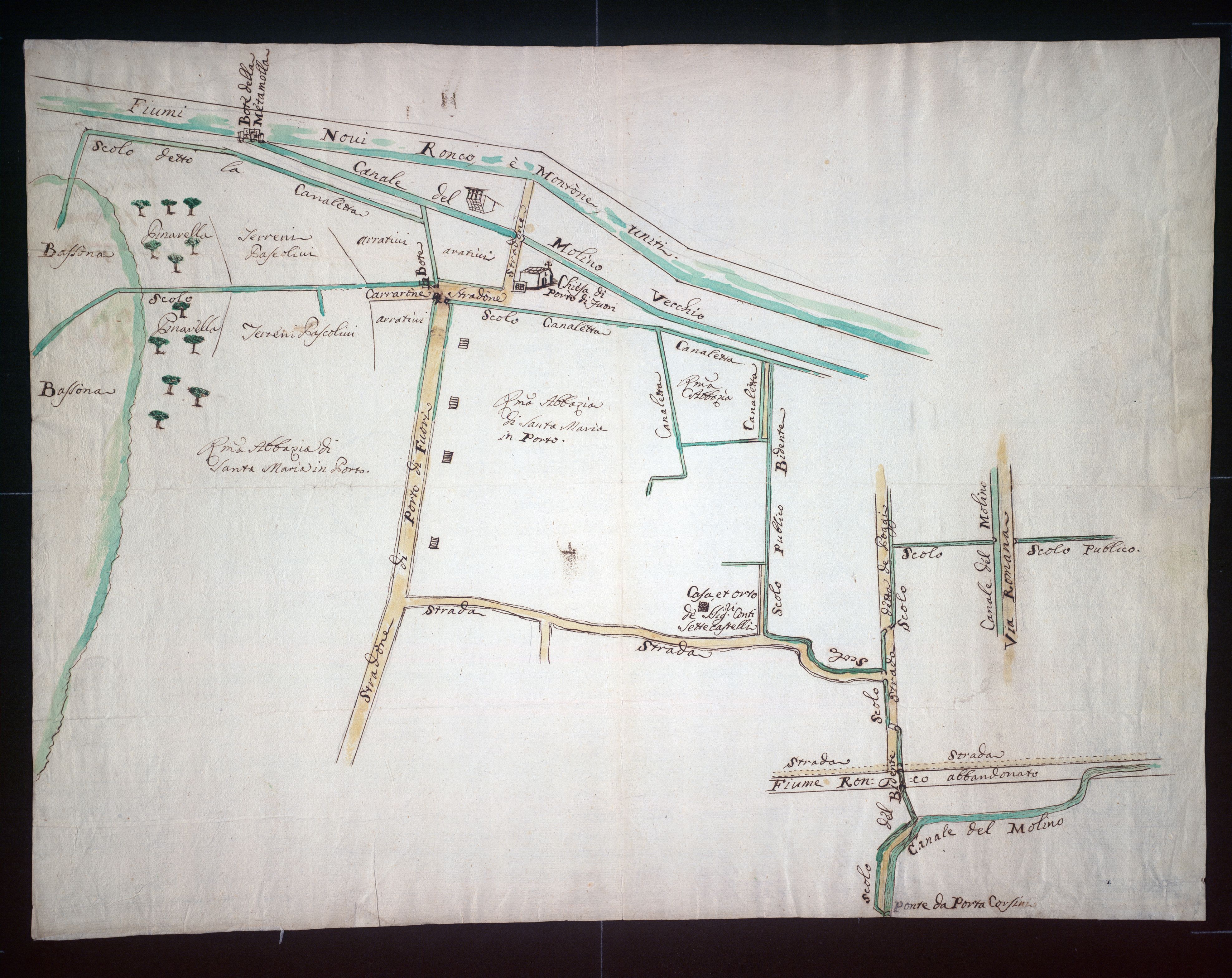 Beni di S. Maria in Porto presso i fiumi Ronco e Montone uniti e canale del Molino vecchio dalla Mattonella, scolo Canaletta di Porto, strade etc