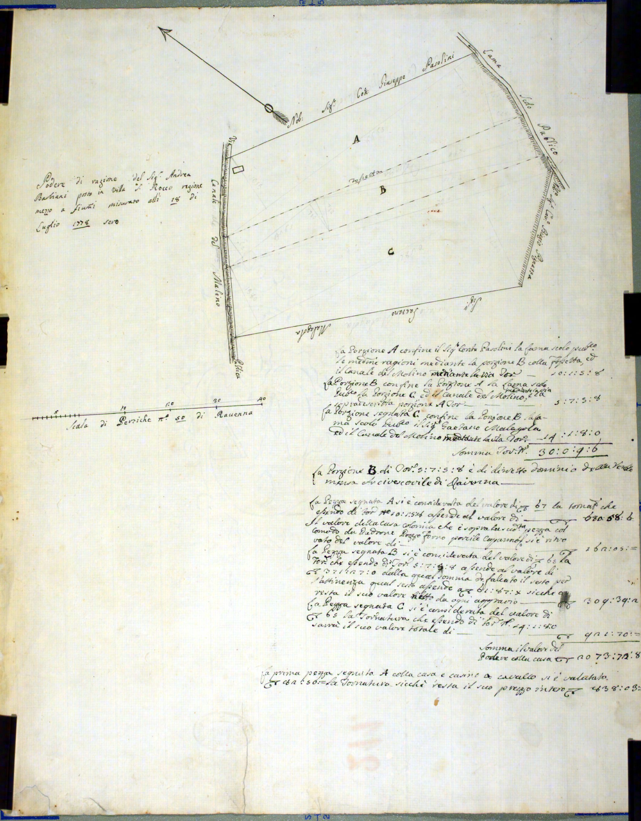 Pianta di un podere di Andrea Barbiani in villa di S. Rocco