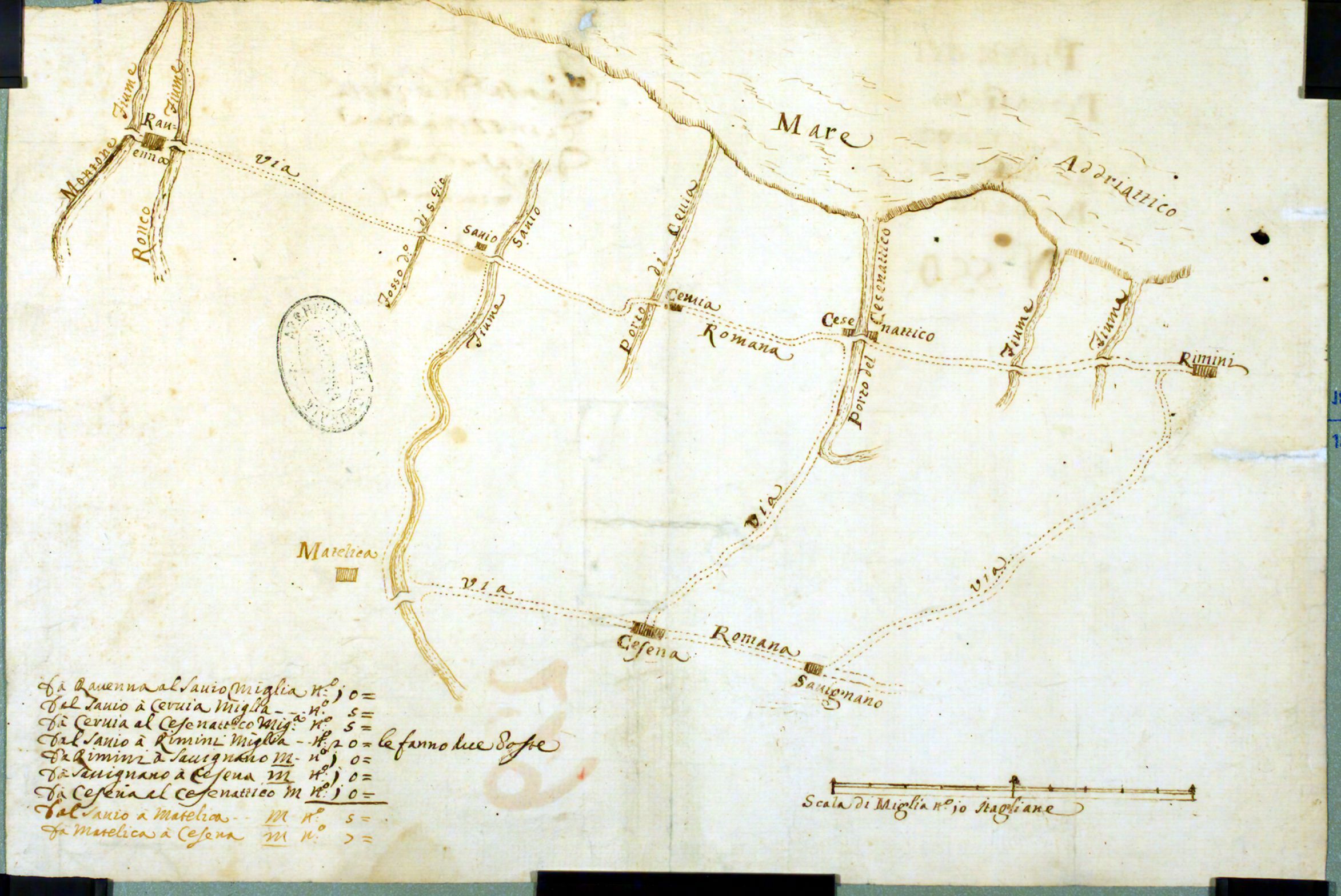 Pianta dimostrativa della Strada Romana da Ravenna a Rimini e da Matelica a Savignano
