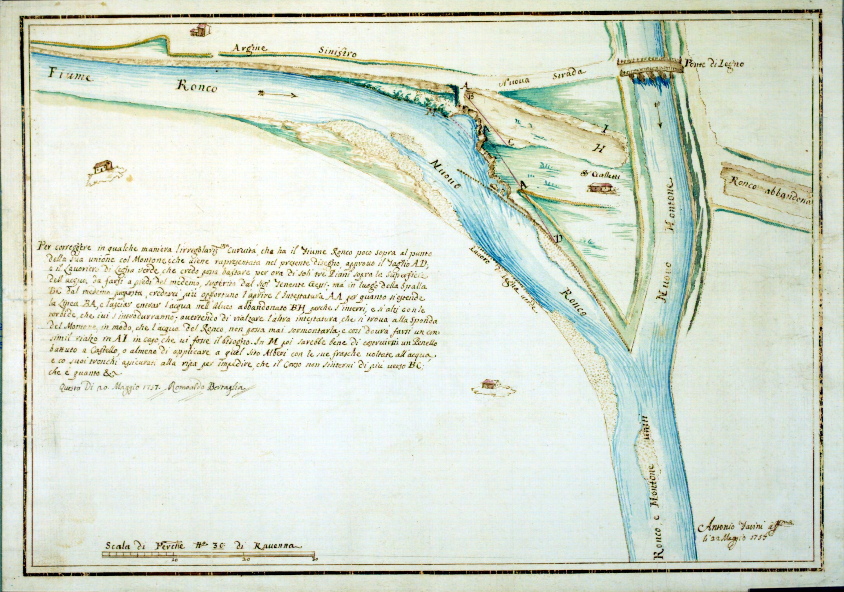 Progetto per correggere la curva che ha il fiume Ronco poco sopra alla sua unione col Montone