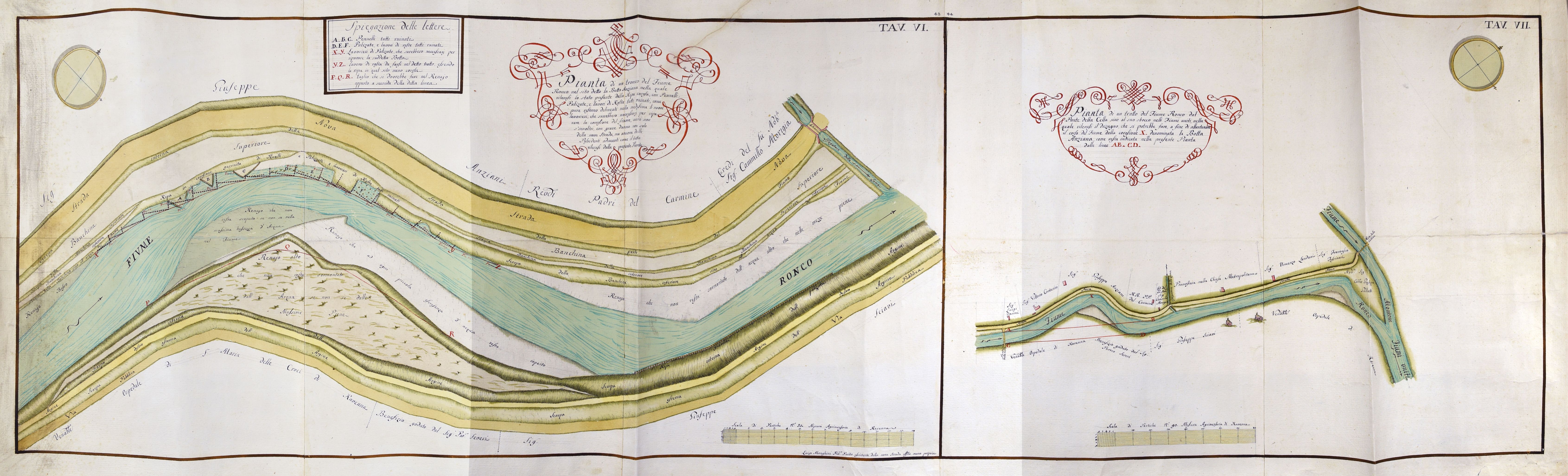 Pianta di un tratto del fiume Ronco dal ponte della Cella ai fiumi uniti per impedire la corrosione alla Botta Anziani