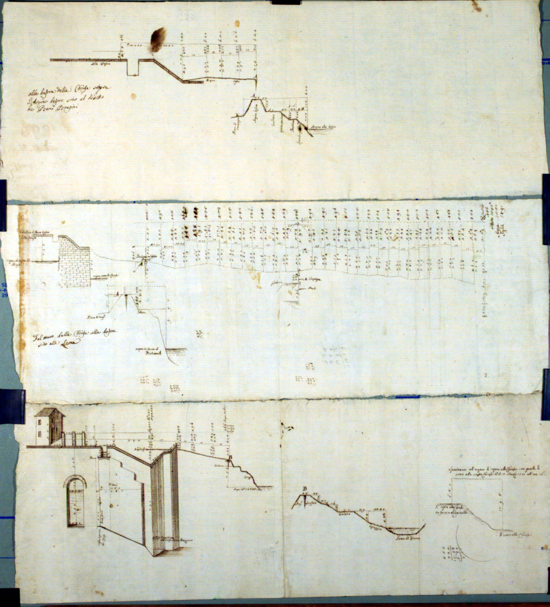Sezioni prese sull'argine destro della chiusa del Montone fino alla Lama