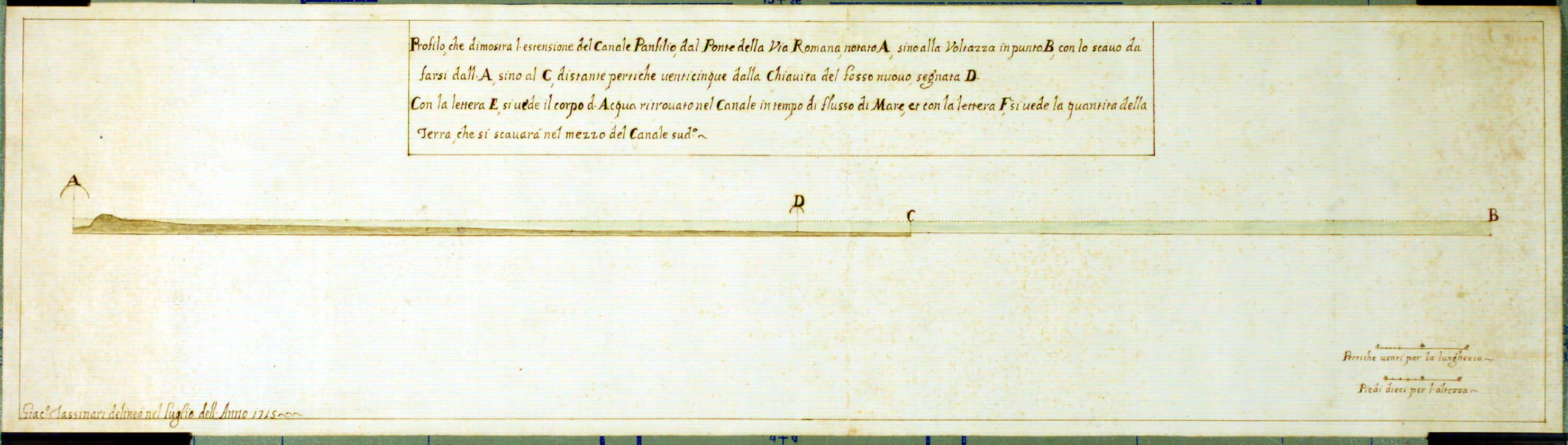Profilo che dimostra l'estensione del Canale Panfilio dal ponte della via Romana fino alla Voltazza