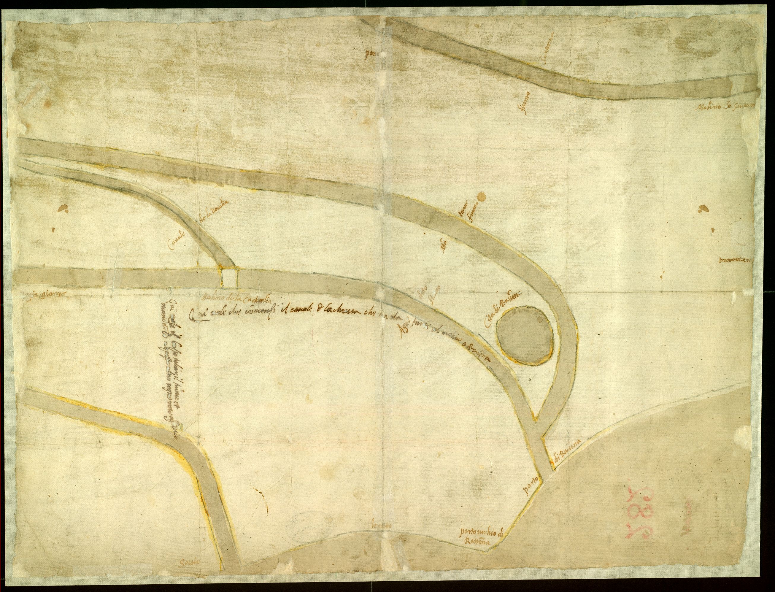 Porto antico Candiano con i fiumi Savio, Ronco dal Canale della Coccolia, Montone, Montone e Santerno