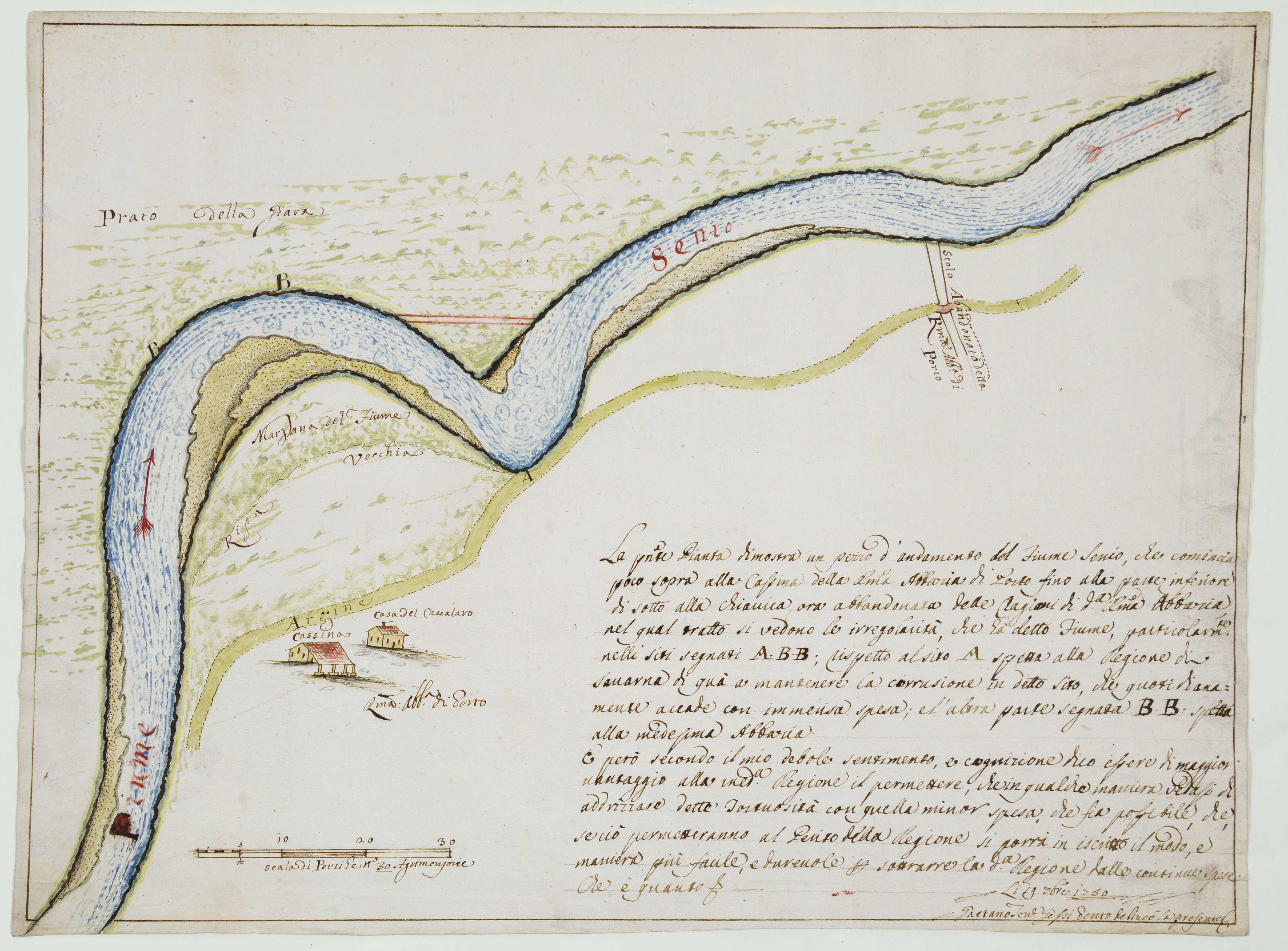 Sul verso: "1750 Fiume Senio Tortuosità da raddrizzarsi in quel di Savarna"