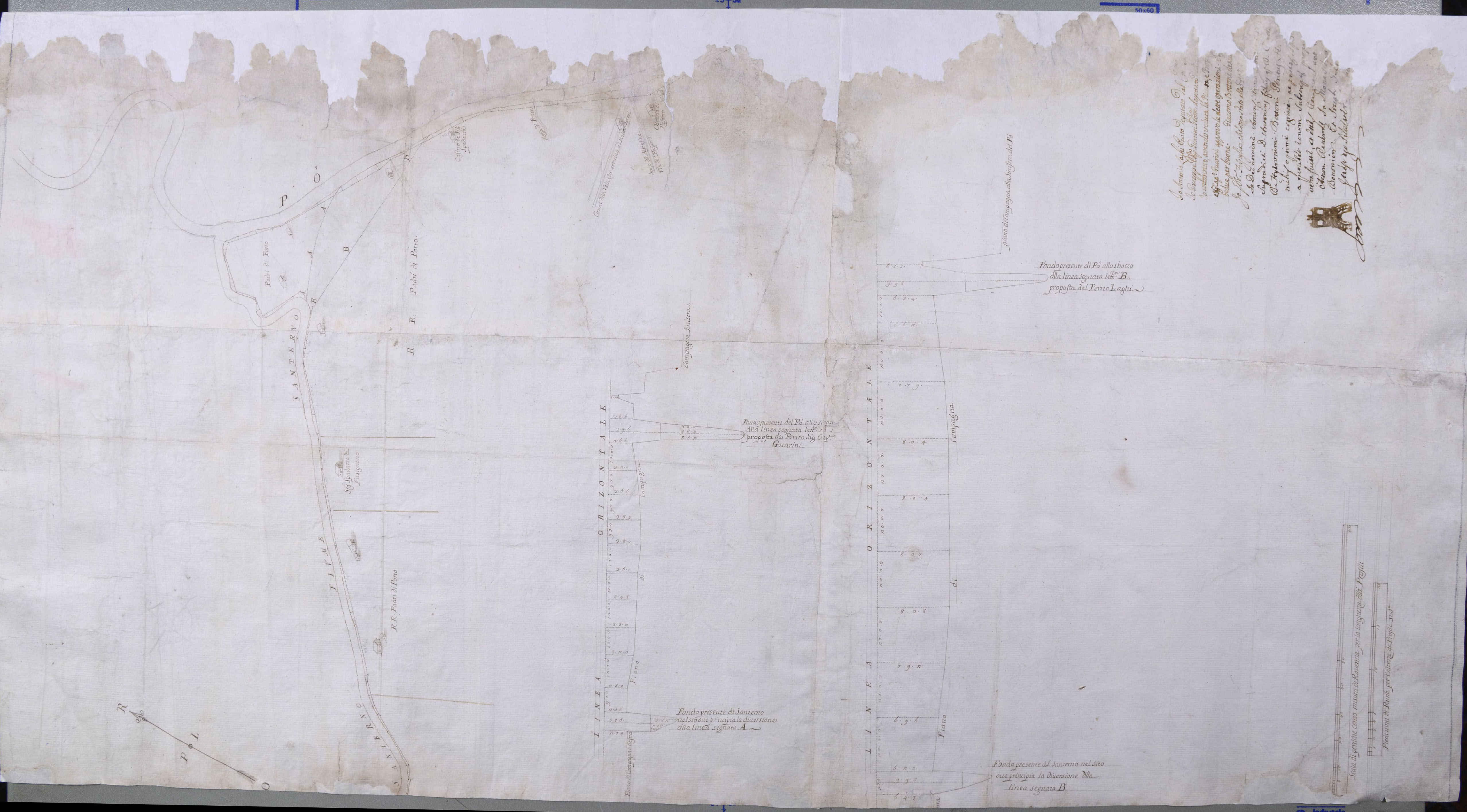 Pianta e profili del fiume Santerno alla confluenza del Po di Primaro