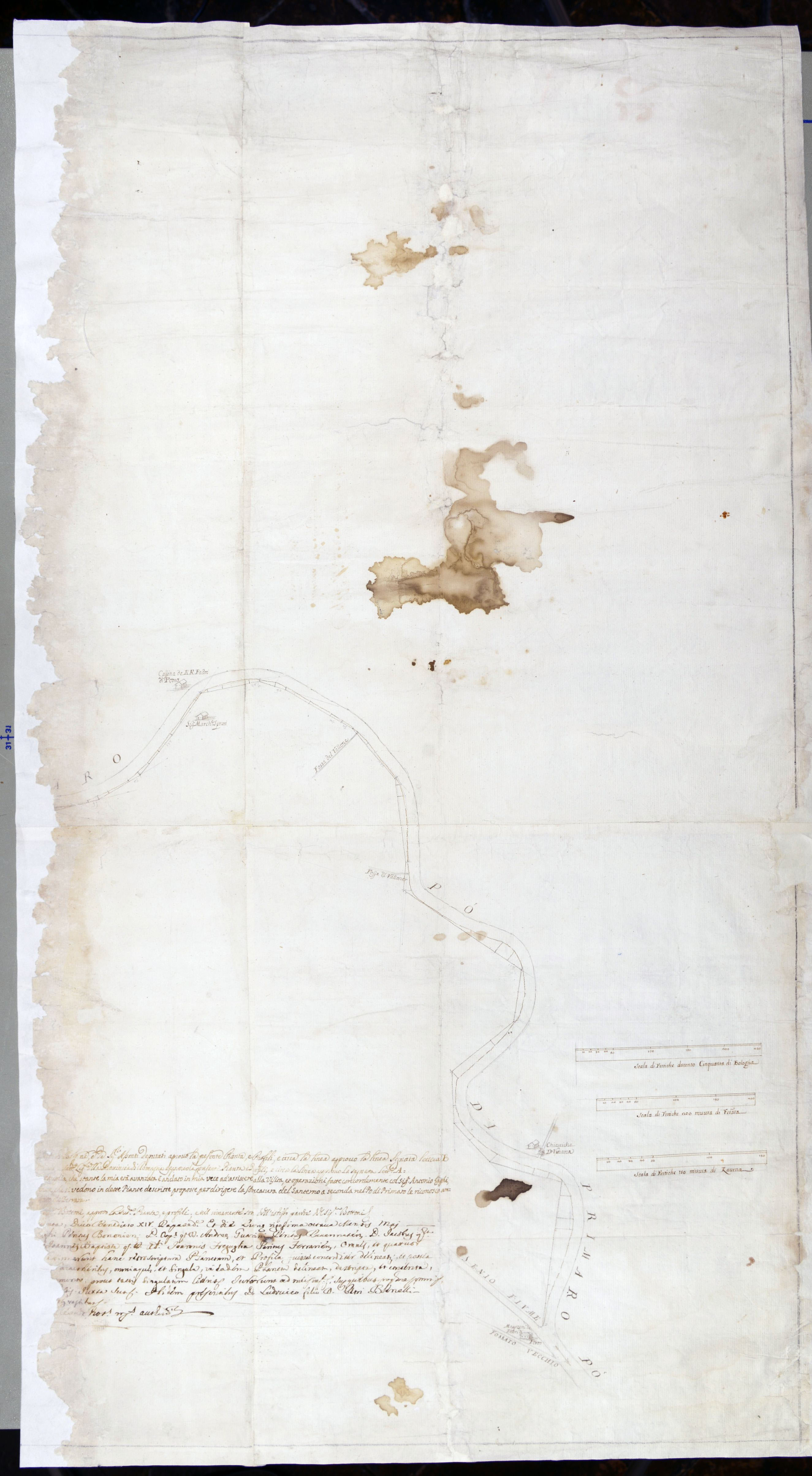 Pianta del Po di Primaro dalla cascina dei RR. Padri di Porto alla confluenza col Senio e col Fossato vecchio (misurazione dell'argine destro).