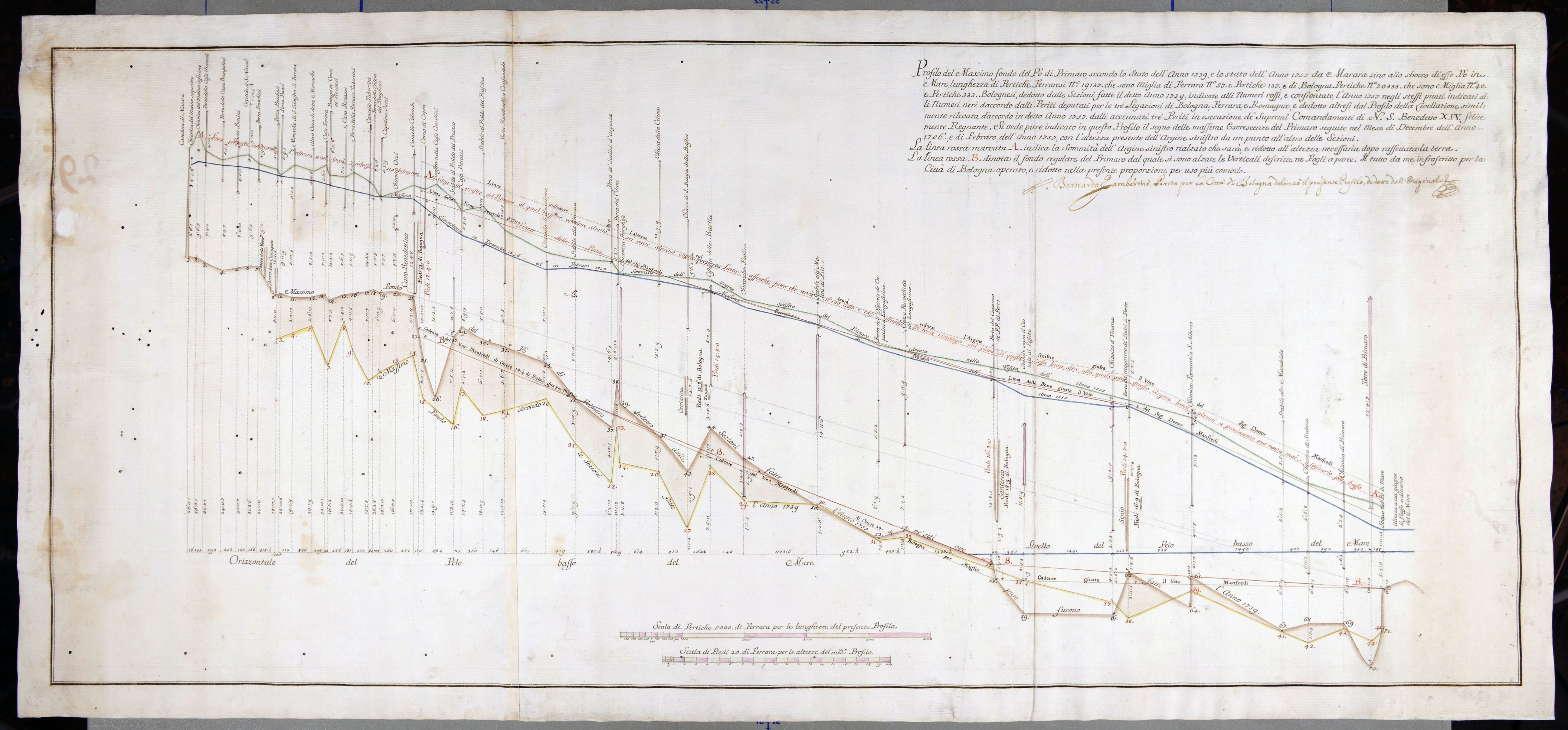 Profilo del massimo fondo del Po di Primaro dal Cavedone di Marara sino al mare.