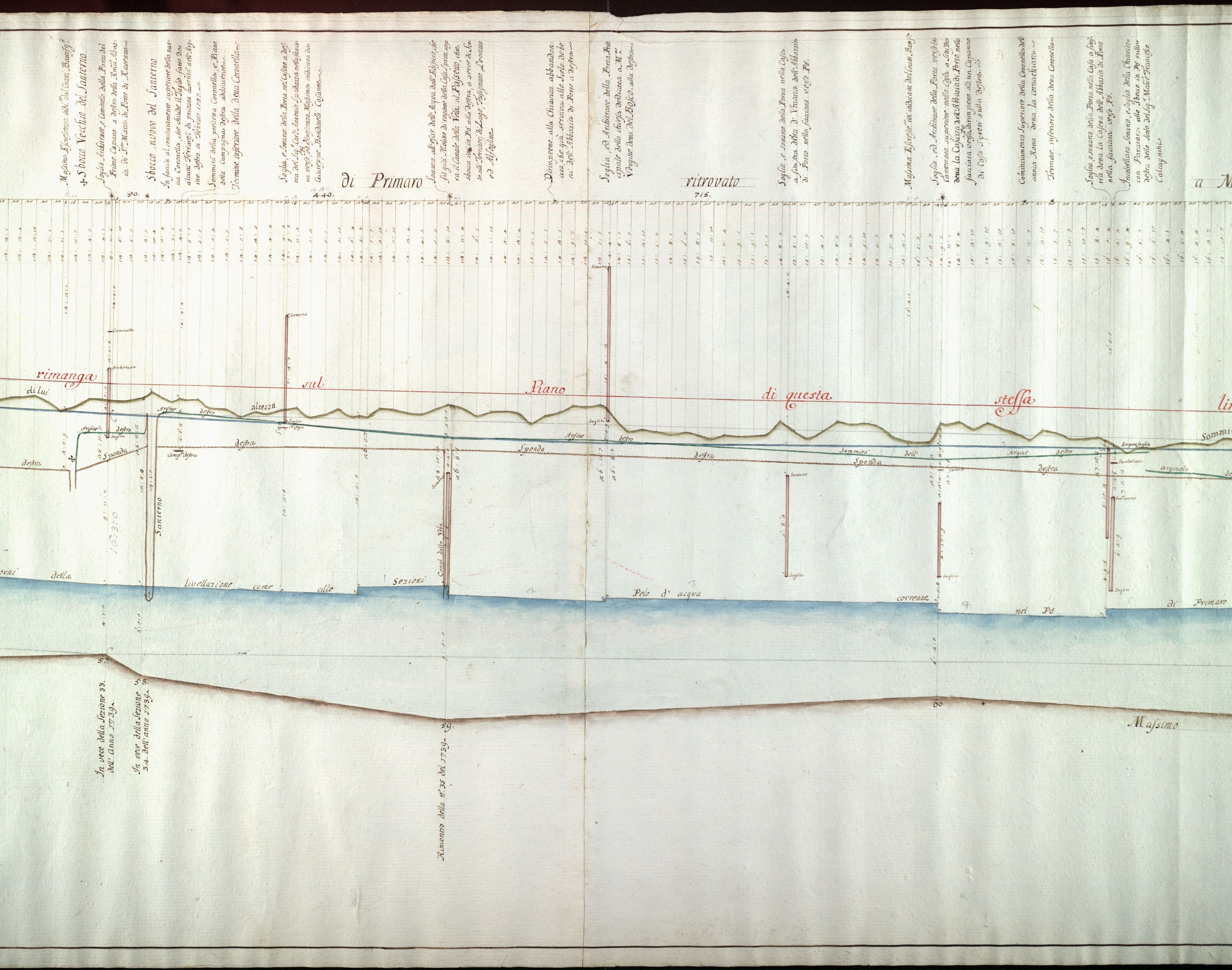 Profilo della sommità dell'argine principale sinistro del Po di Primaro guardato in tempo dell'escrescenza.