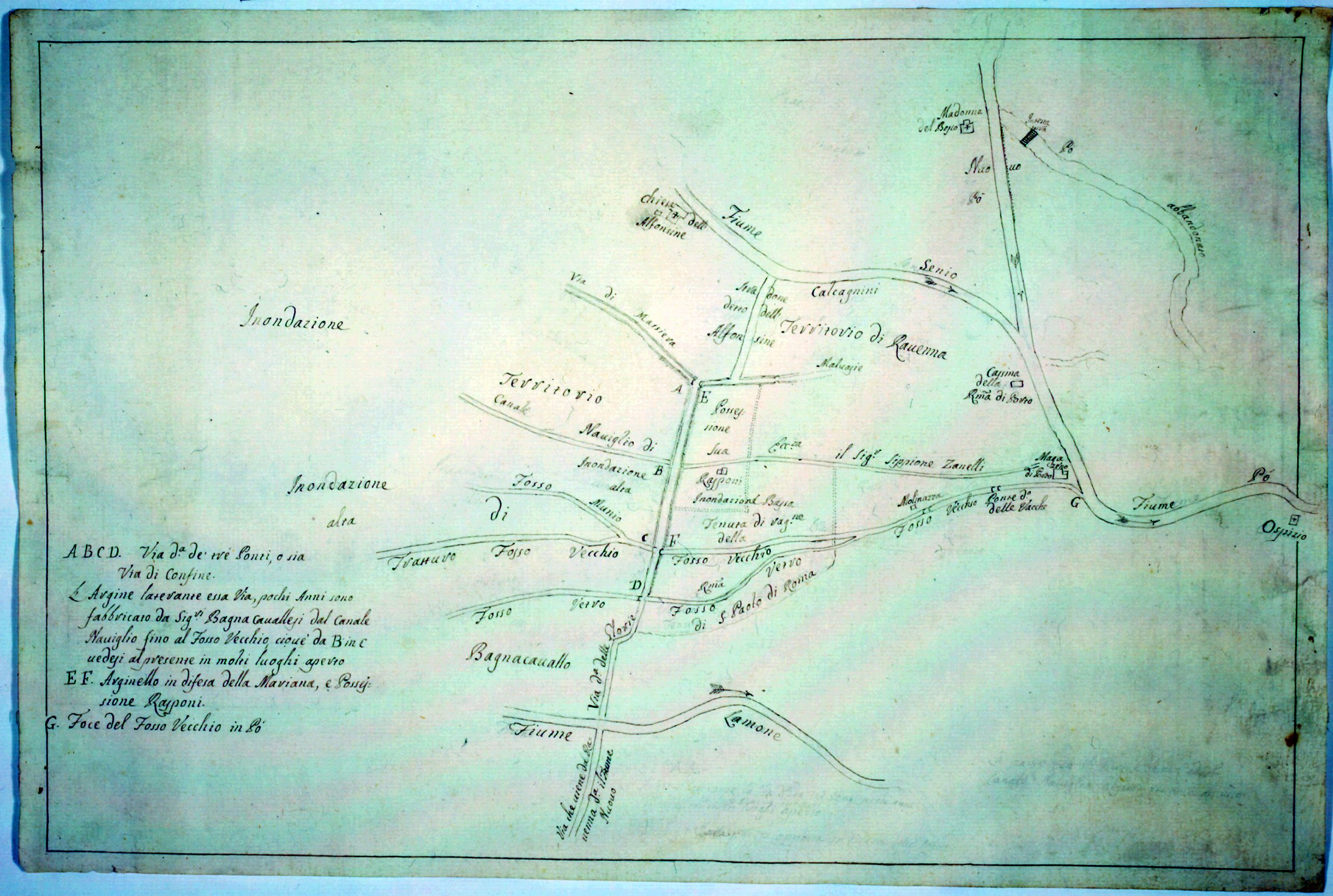 Po vecchio. Po nuovo di Primaro. Madonna del Bosco. Fiume Senio. Alfonsine. Via di Masiera. Fosso Munio. Canal naviglio Zanelli. Fosso Vecchio. Fosso Vetro. Lamone.