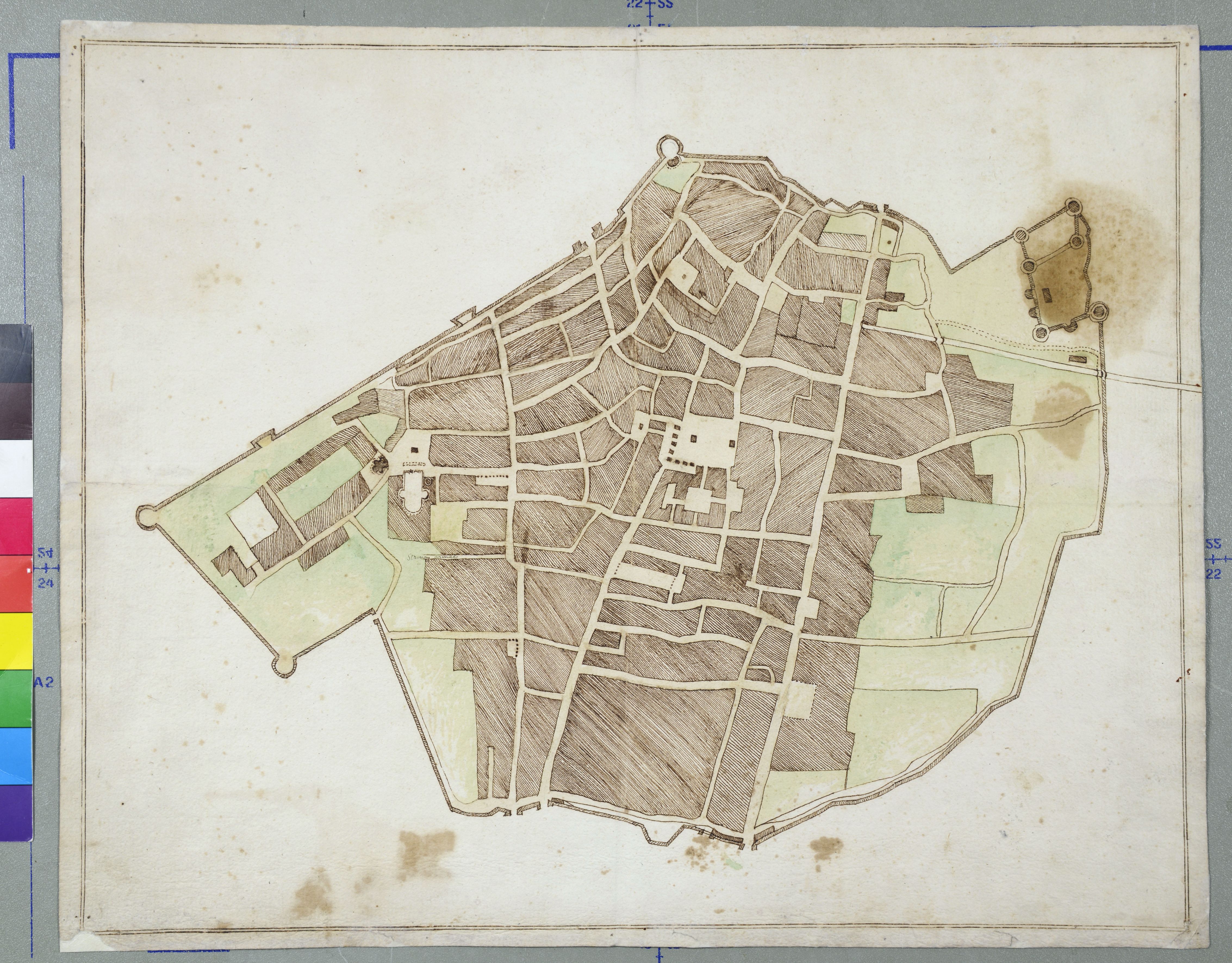 Pianta muta della città di Ravenna (con le strade Stronzo armato, e Barberini.).