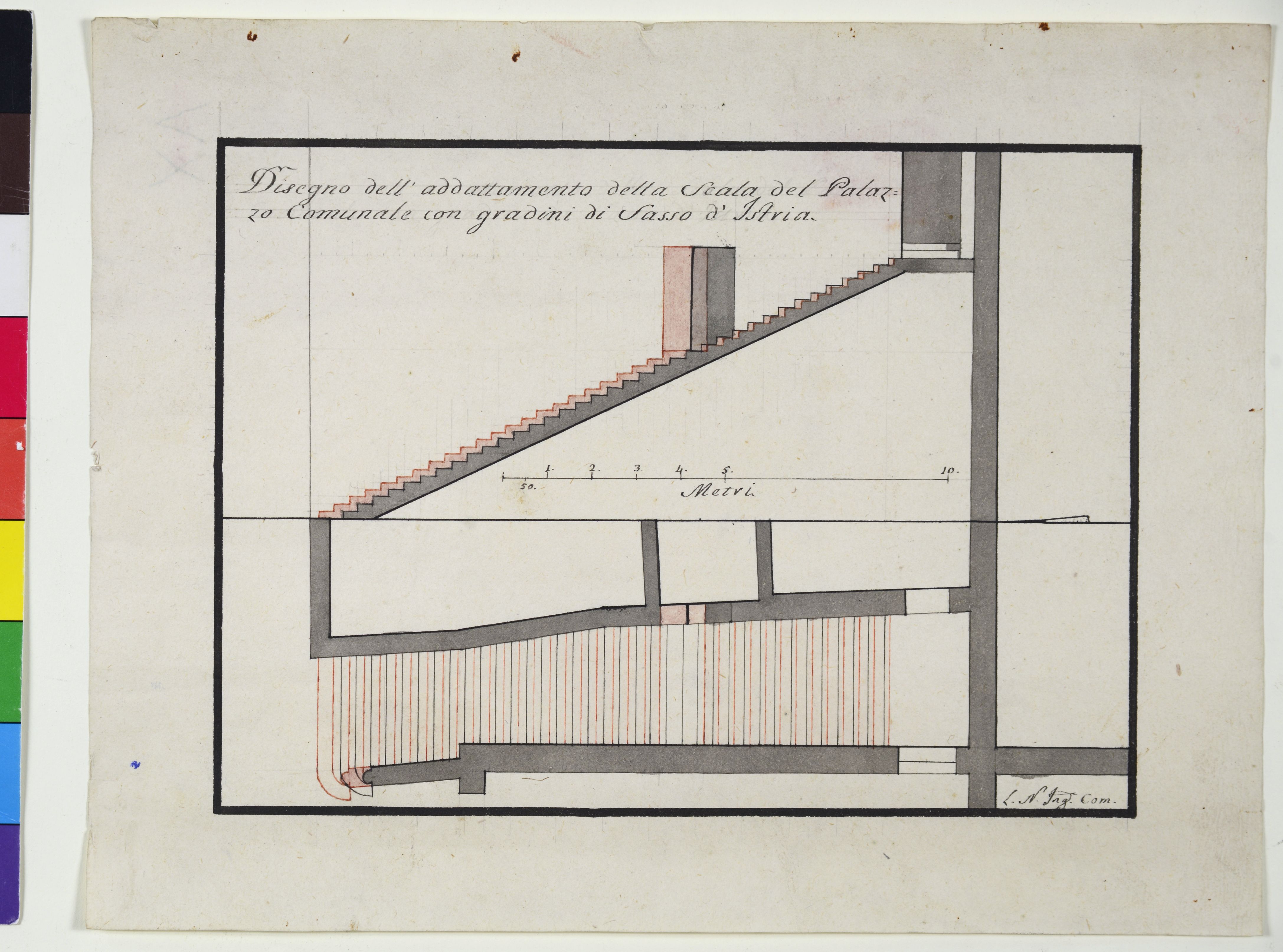 Disegno dell'adattamento della scala del Palazzo comunale con gradini di sasso d'Istria.