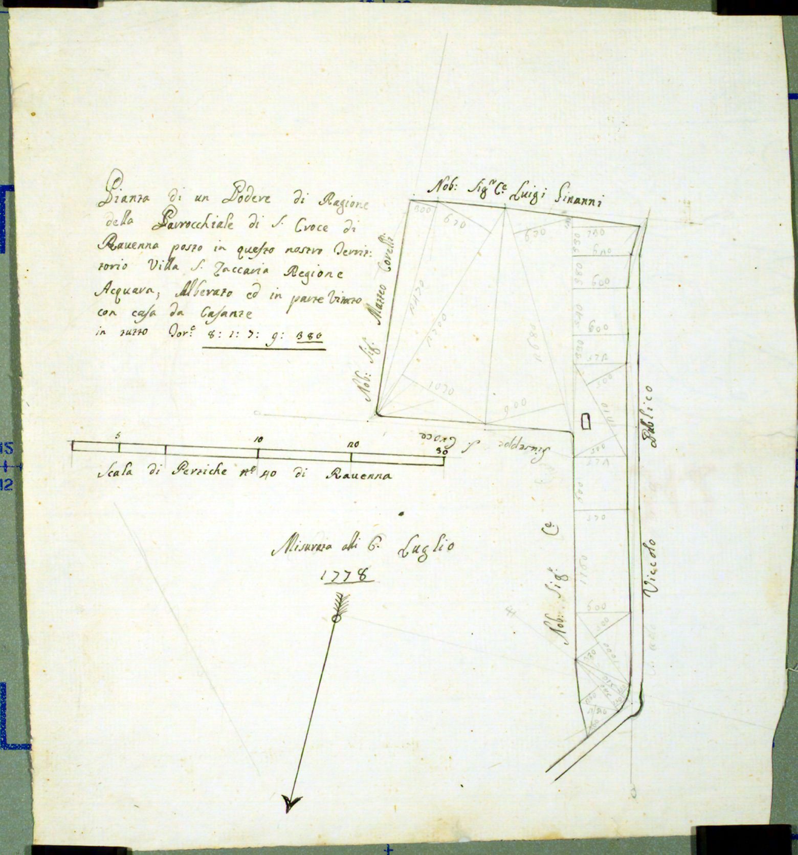 Pianta di un podere della parrocchia di S. Croce in villa S. Zaccaria