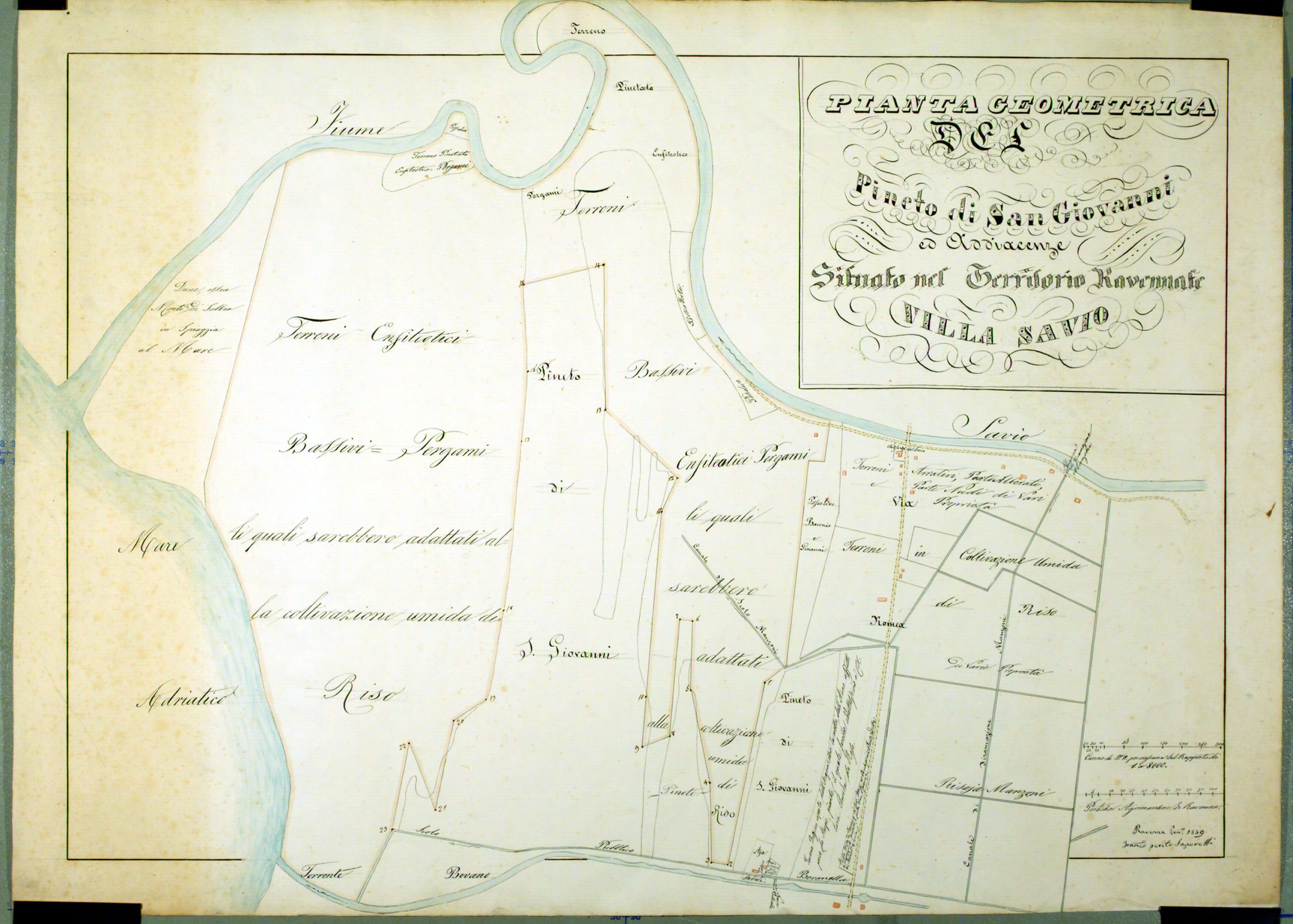 Pianta geometrica del pineto di S. Giovanni Evangelista ed adiacenze situato nel territorio Ravennate villa Savio (Terreni dell'enfiteusi Pergami)
