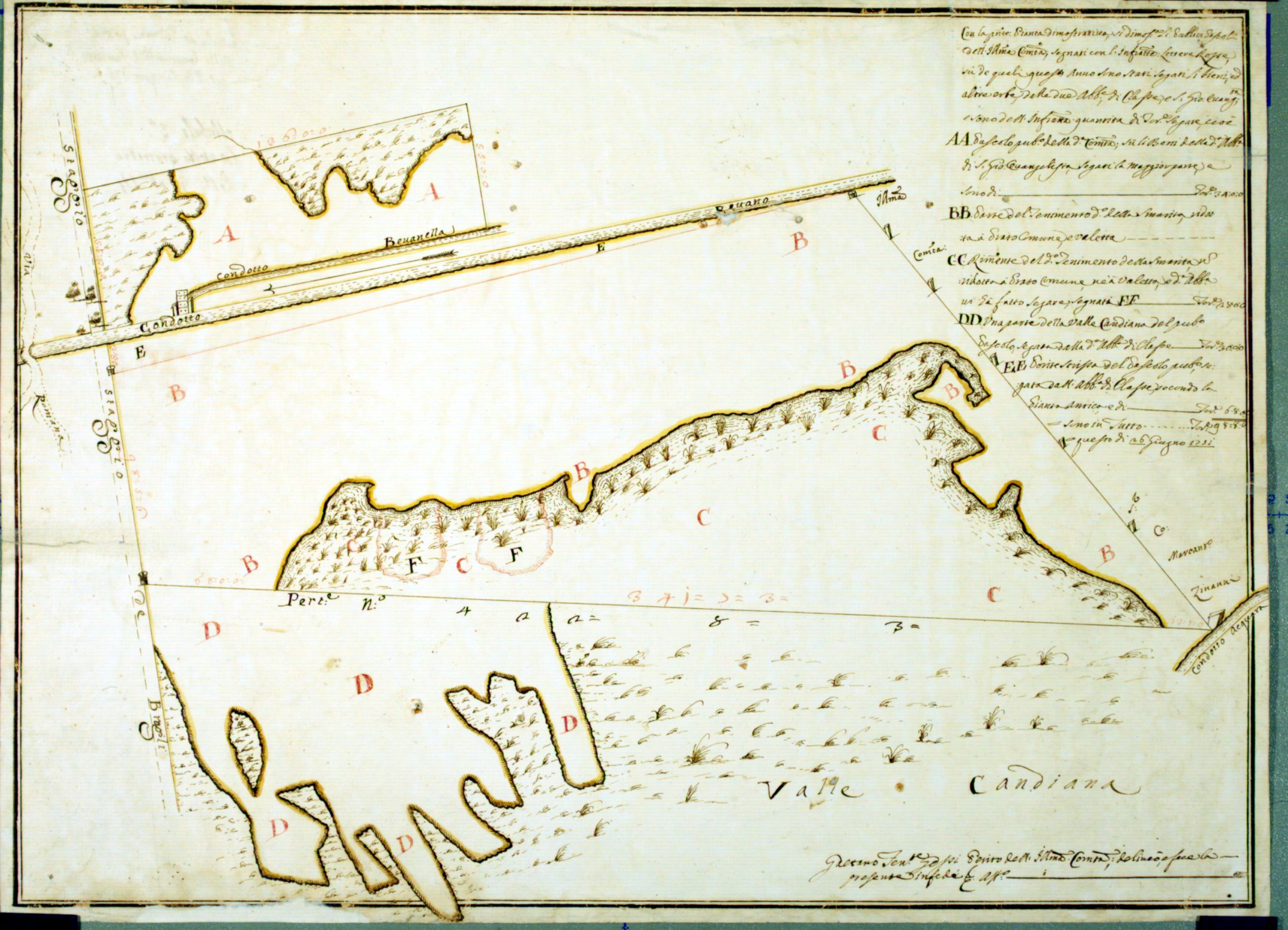 Pianta con cui si dimostrano i pubblici pascoli della Comunità di Ravenna sui beni di San Giovanni Evangelista, nel tenimento Smarrita, nella Valle Candiana e nella Punta Striscia