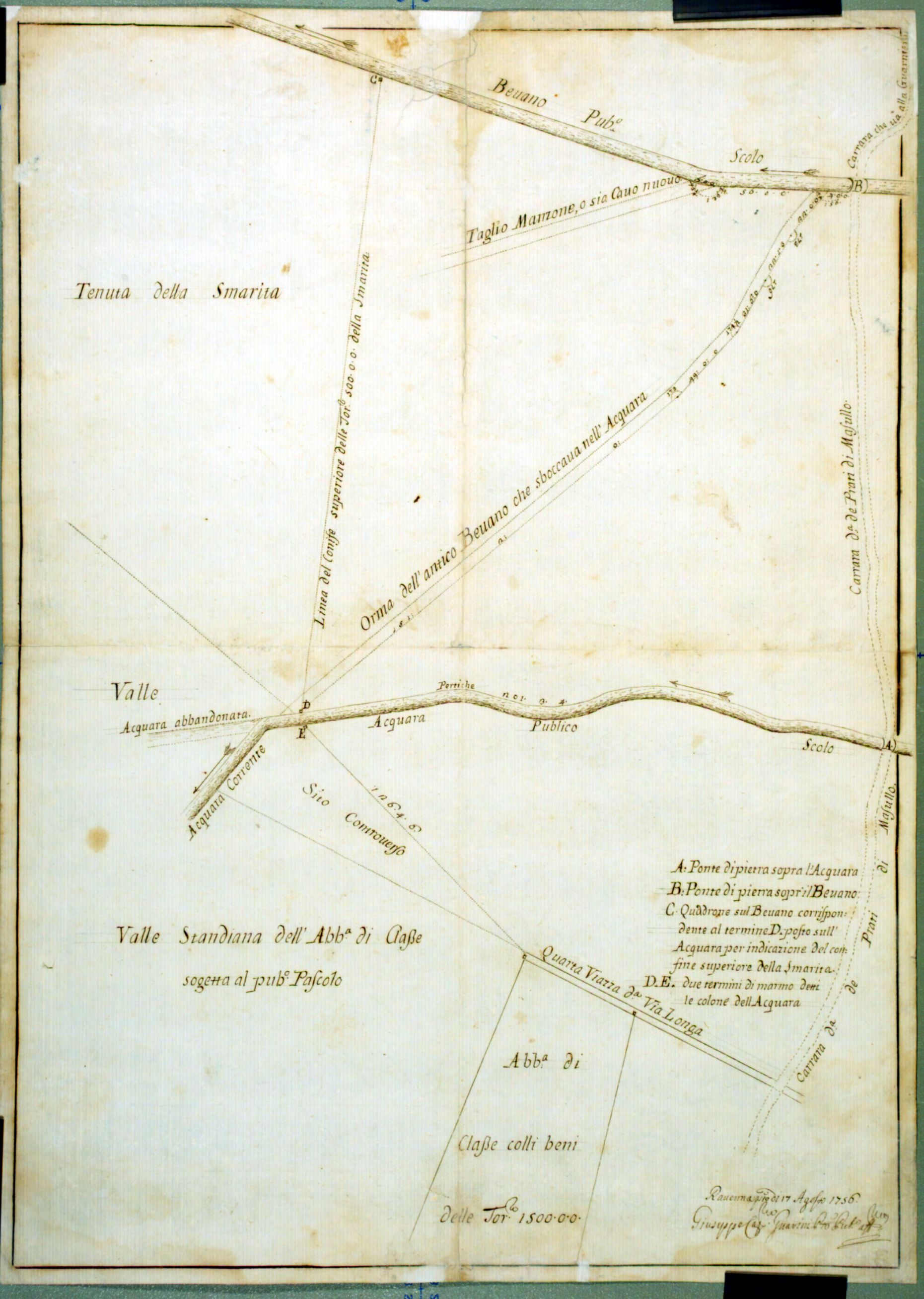Acquara, via Lunga, Carrara dei prati di Masullo, Bevano, La Smarrita, Valle Standiana de' PP. di Classe soggetta a pubblico pascolo