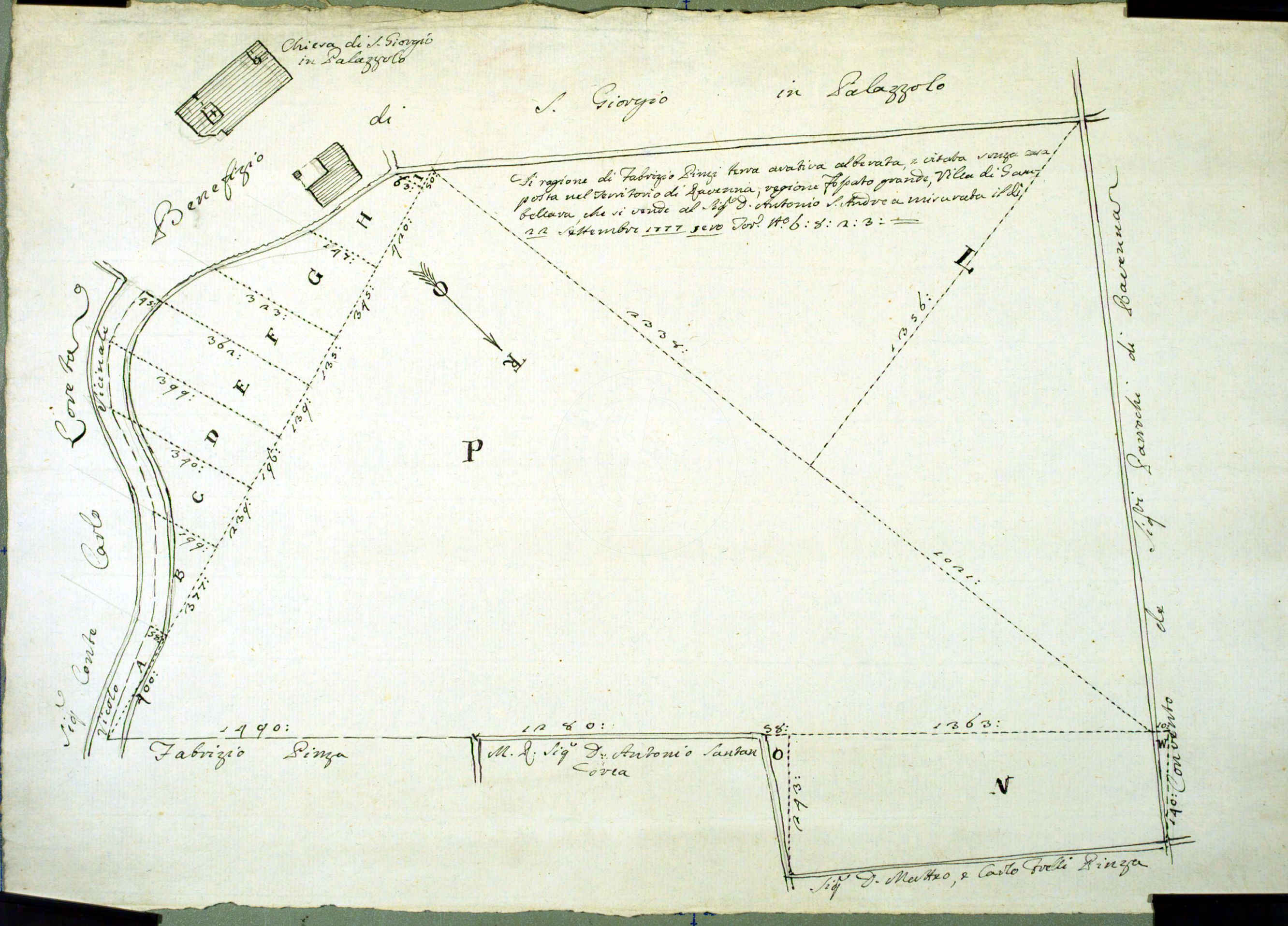 Pianta di un podere di F. Pinzi posto in Gambellara, venduto ad A. Santandrea, Presso la Chiesa di S. Giorgio in Palazzolo