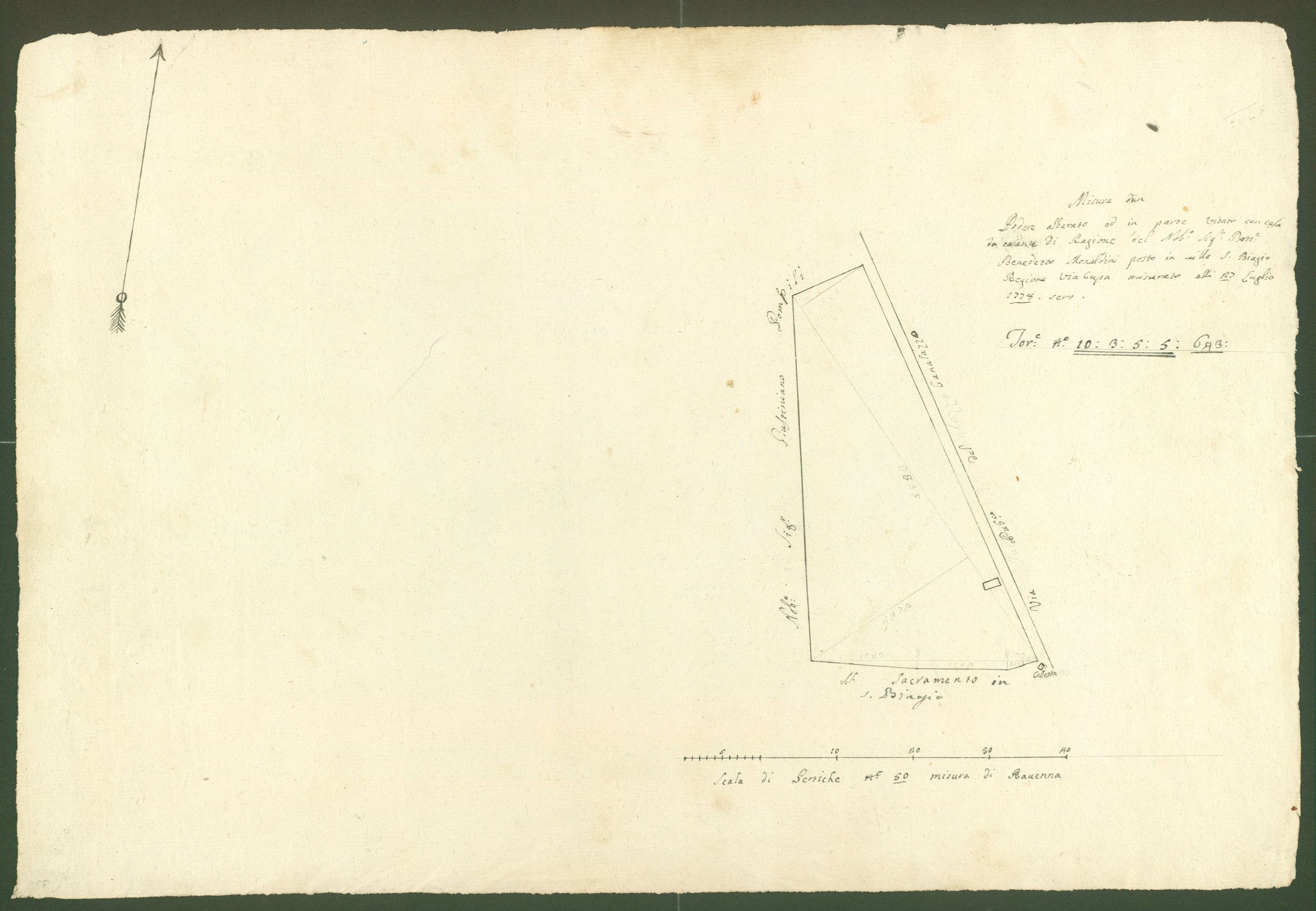 Pianta di un podere di B. Monaldini in villa San Biagio.