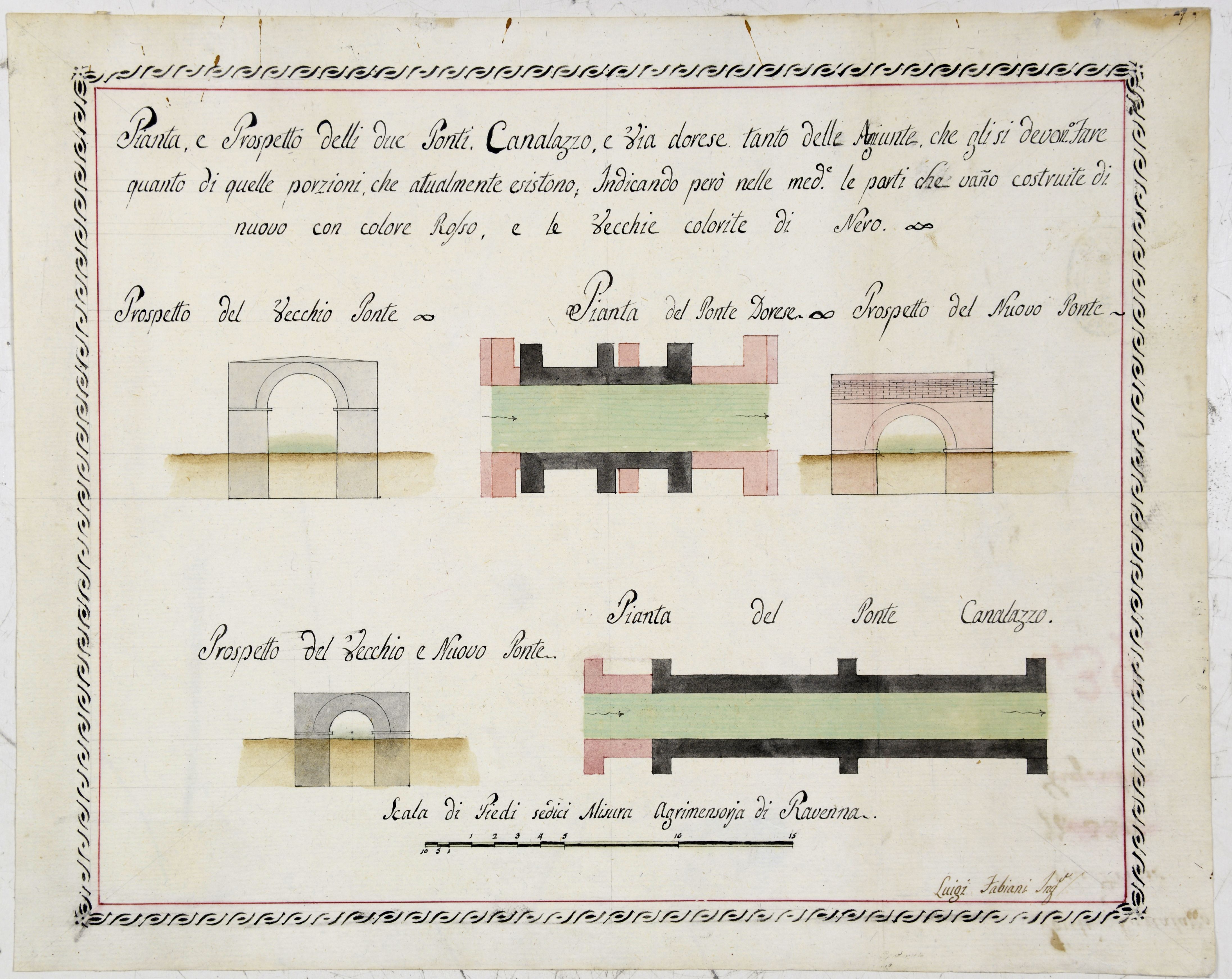 Pianta e prospetto delli due ponti Canalazzo e Via Dorese, posti sulla Via Faentina.