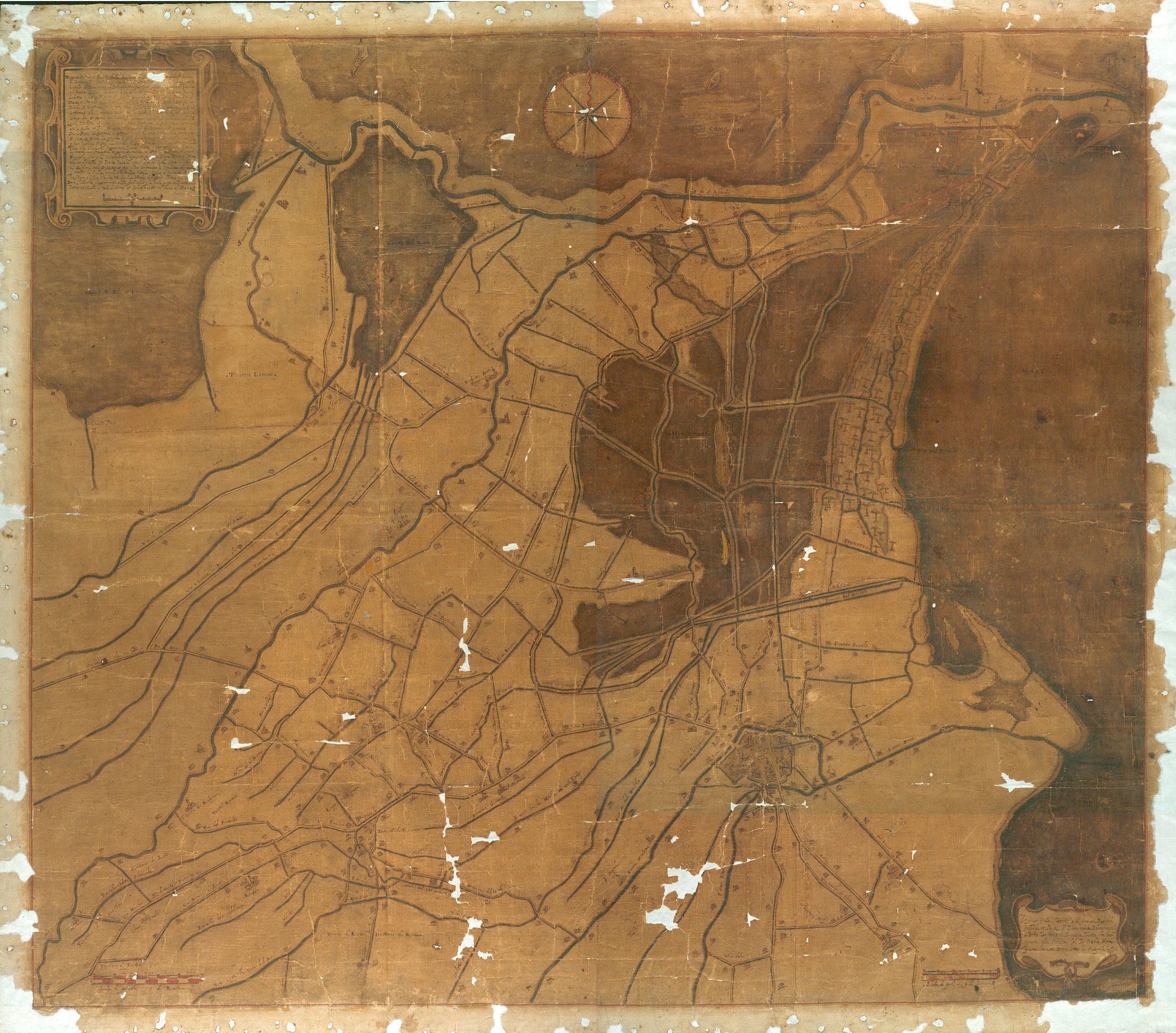 Pianta del territorio di Ravenna, regione di Porta Adriana, (città, strade, scoli, valli, pineta, sino al mare).