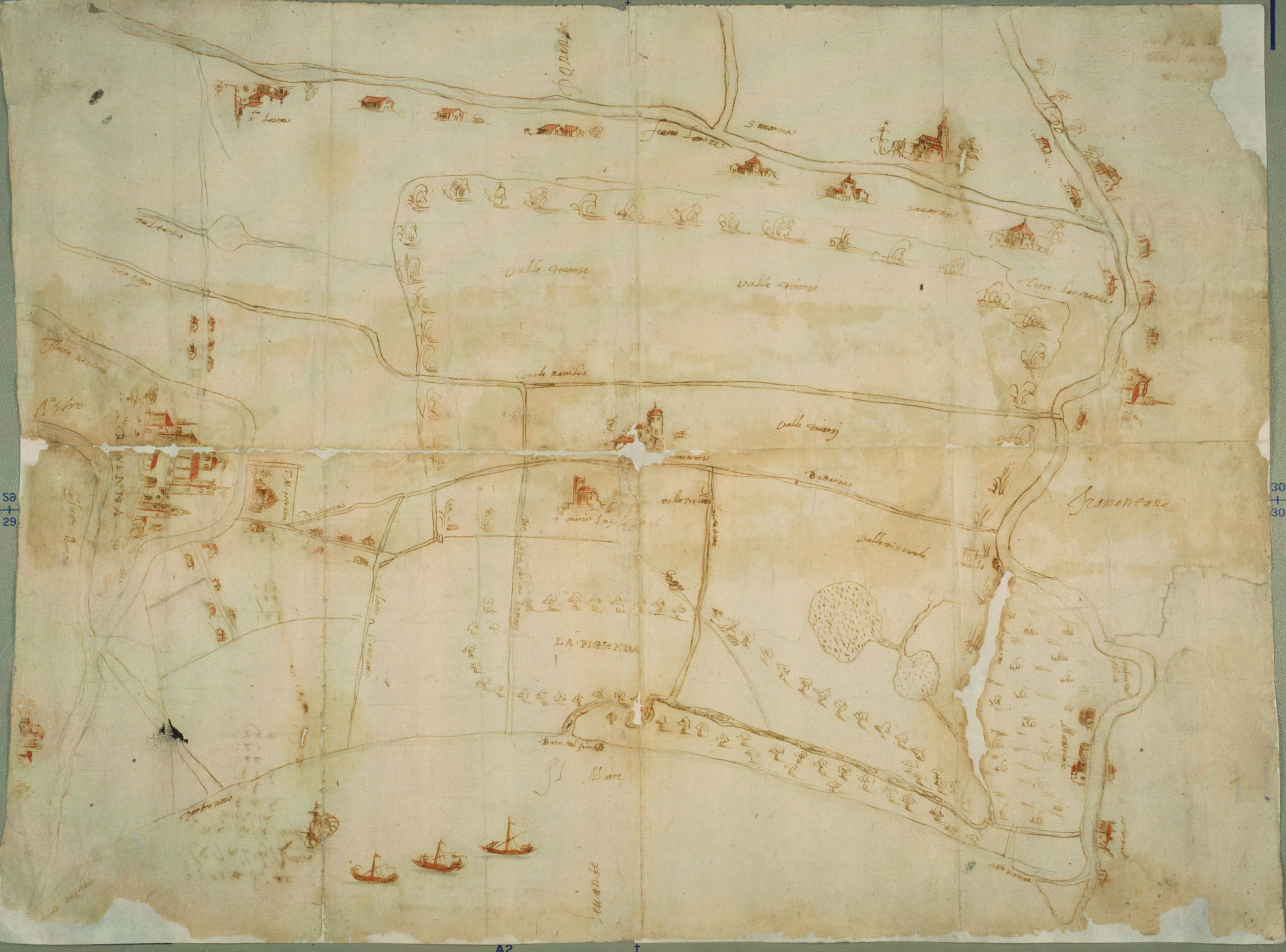 (Ravenna tra i fiumi, spiaggia del mare con le bocche del Porto vecchio del Porto nuovo, del Pirotolo e del Po di Primaro, Po di Primaro, Lamone dal Po a S. Giacomo, valli, Canale Naviglio, S. Pietro in Armentario, Badareno, S. Maria in Palazzolo. Pineta ).