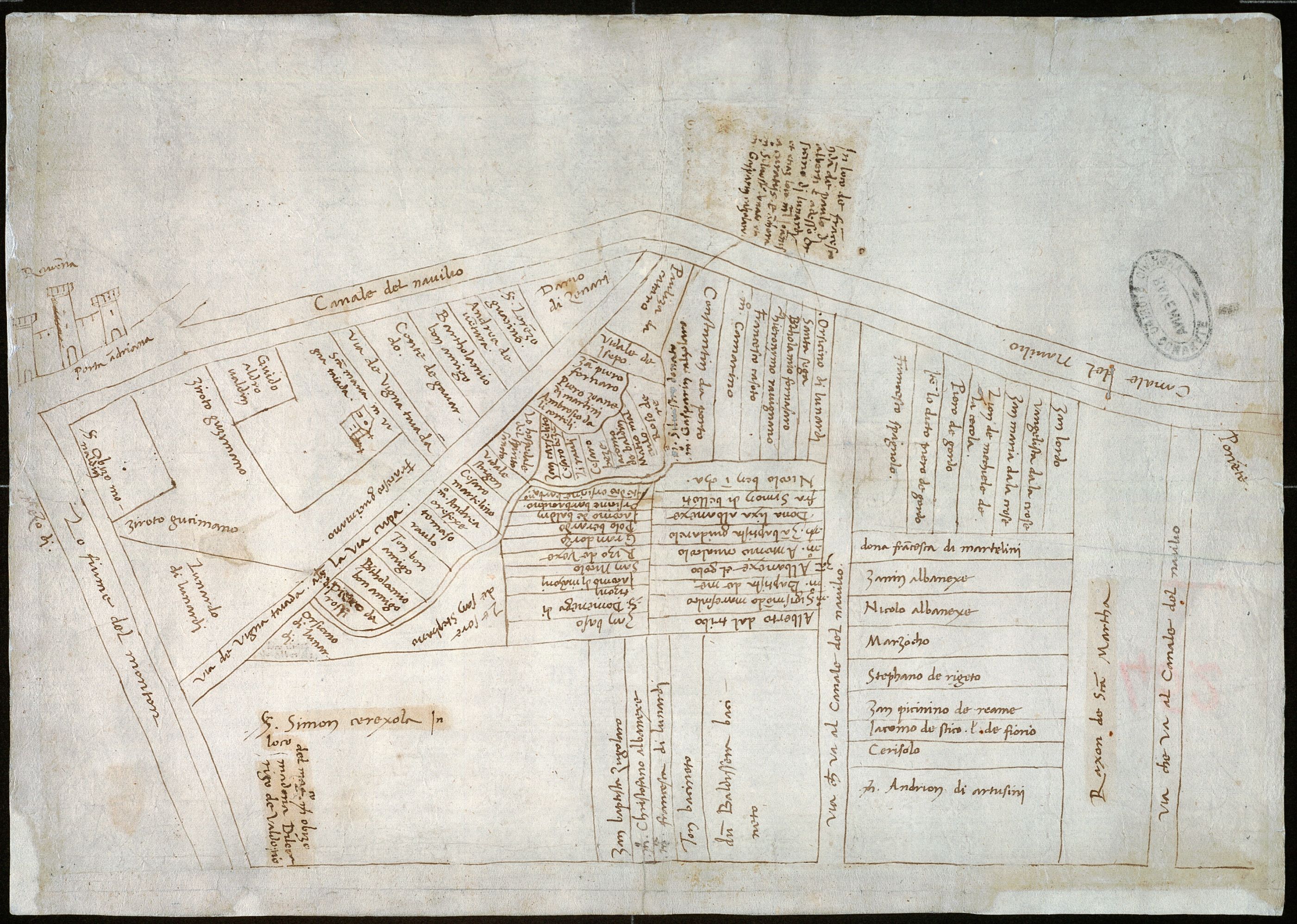 Porta Adriana, Canale Naviglio, Montone, via di Vignatagliada alias la Via Cupa, S. Maria in vigna taiada.