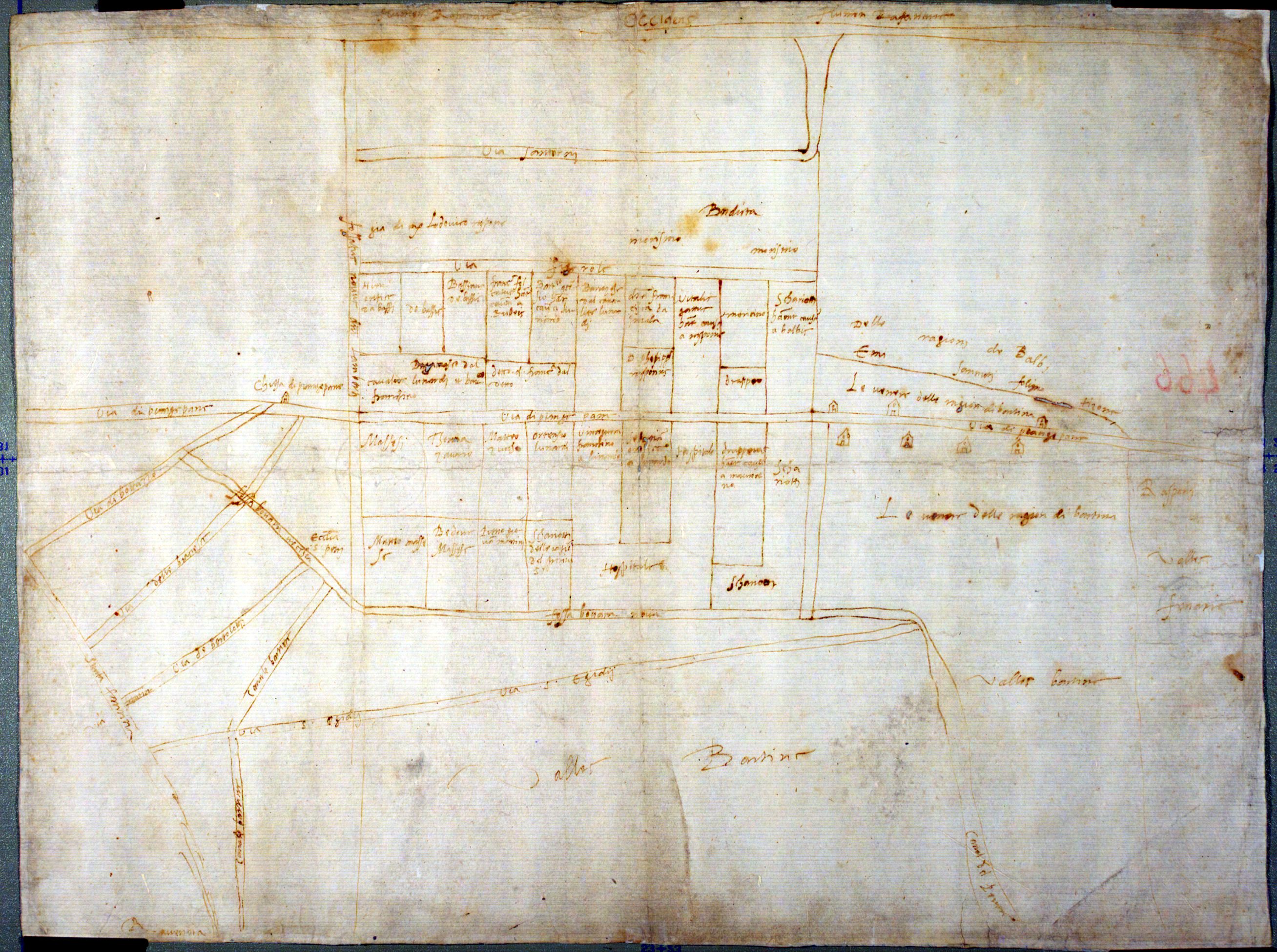 (Bartina e Figarolo. Villanova di Bagnacavallo. Lamone. Villanova de Balbi, chiesa del Mezzano, Benedetta, Polentesia, via di Santerno che va al fiumi da la volta. Olim fiume nuovo che andava alle valli de fossa, Via della Montagnola, Coltula e Figarola, Via di Piangipane, Fossa boaria) e Fossa Boaria sino al Canal del pevere, Via di S. Egidio, Canale di Bartina ecc. ;
