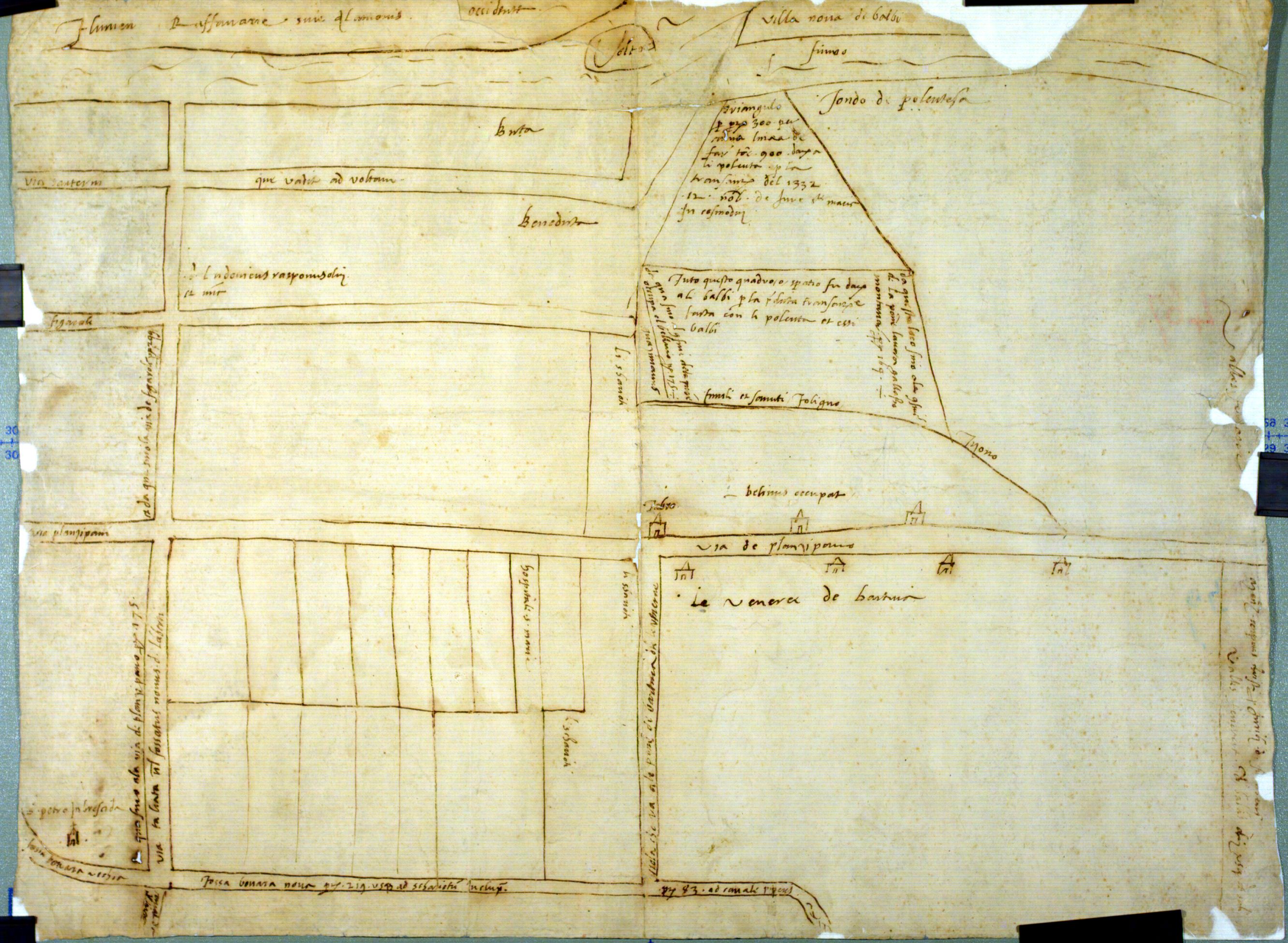 (Bartina e Figarolo. Villanova di Bagnacavallo. Lamone. Villanova de Balbi, chiesa del Mezzano, Benedetta, Polentesia, via di Santerno che va al fiumi da la volta. Olim fiume nuovo che andava alle valli de fossa, Via della Montagnola, Coltula e Figarola, Via di Piangipane, Fossa boaria) e S. Pietro in Briseida presso la Fossa Bovara vecchia.