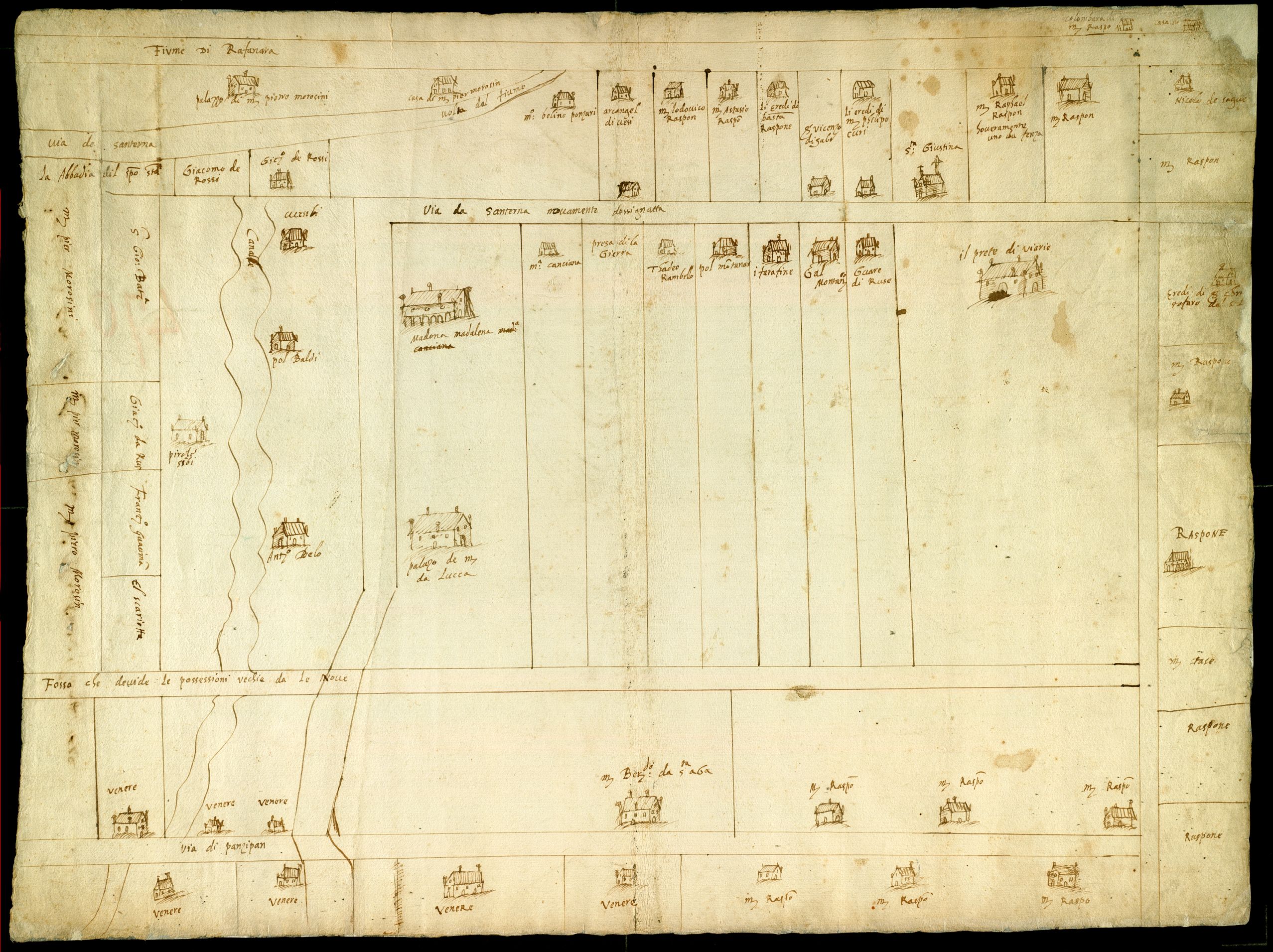 (Bartina. Fiume di Raffanara. Via di Santerna. Possessioni Morosini, Rasponi, Maddalena e Canciana (Giorgi), via di Piangipane ecc)