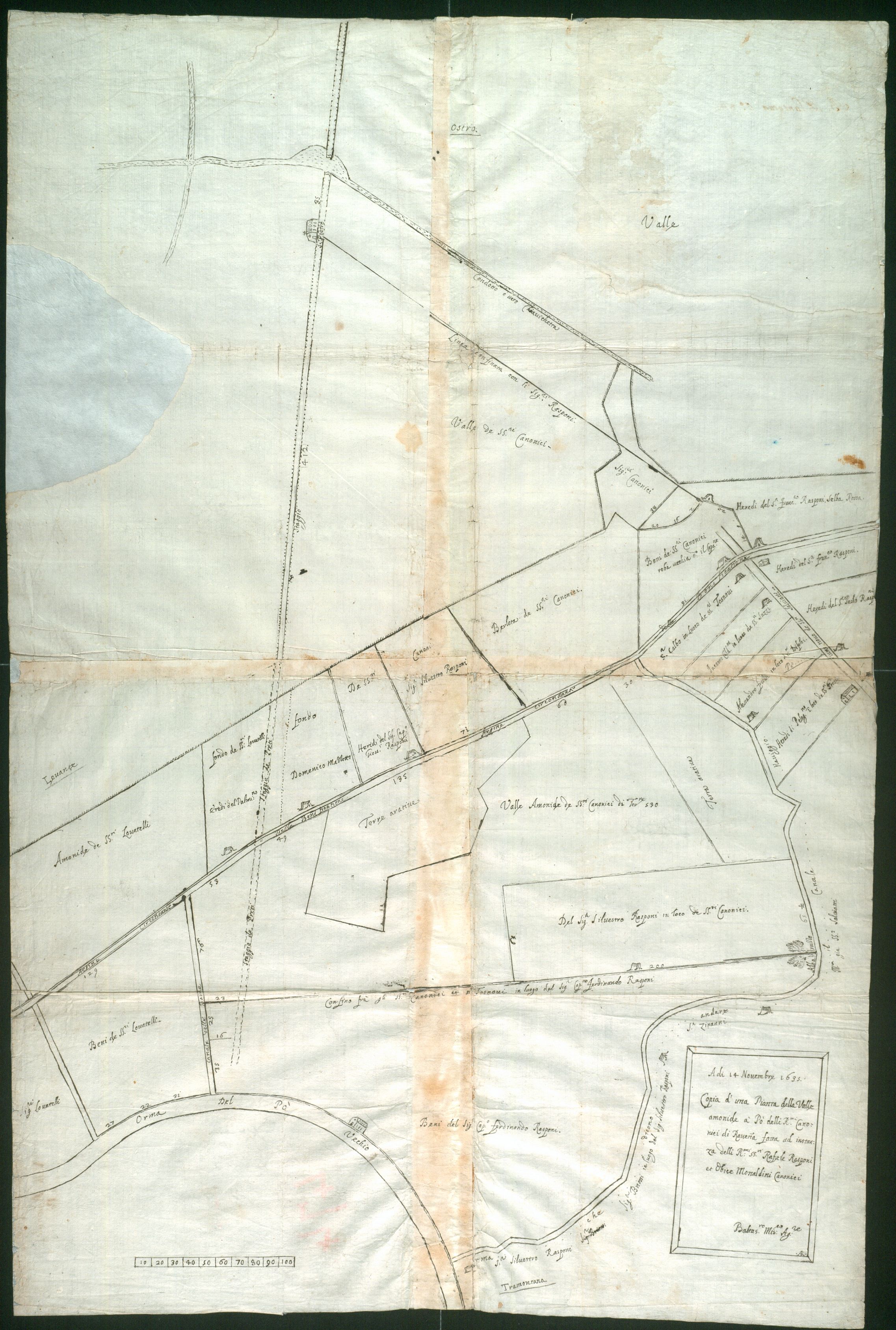 adi 14 novembre 1635. Copia d'una pianta della Valle amonide a Po delli Reverendissimi Canonici di Ravenna fatta ad instanza delli Reverendissimi SS.ri Rafele Rasponi et Obice Monaldini canonici Baldassa.ro Mis(eroso) ag.re