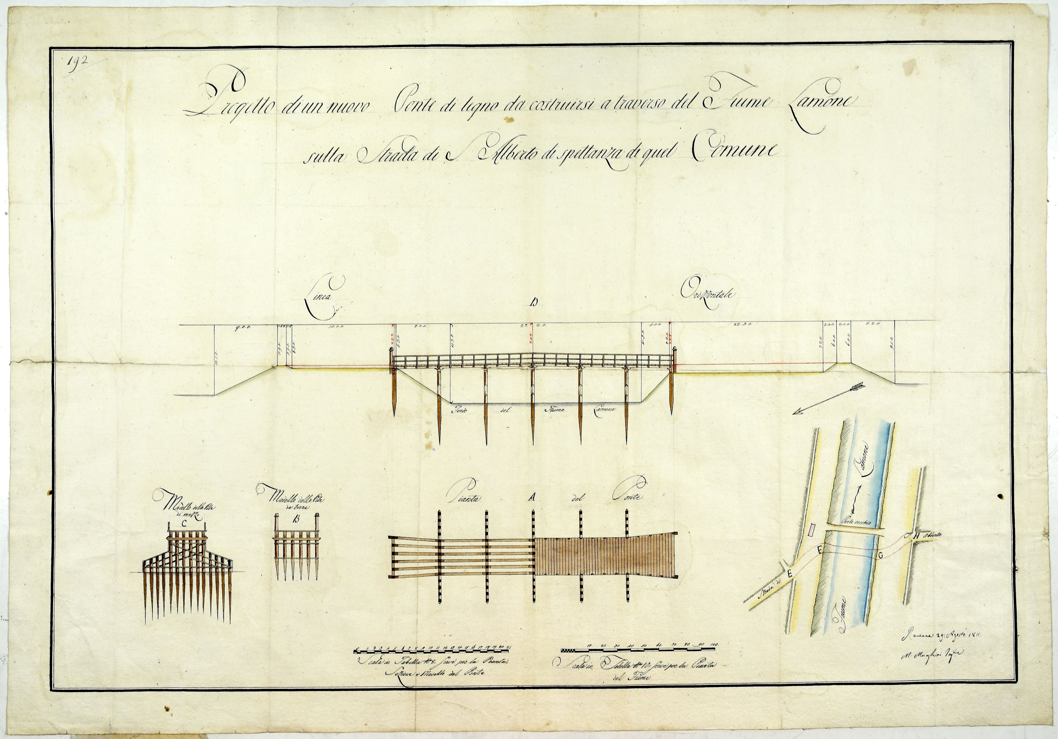 Progetto di un nuovo ponte di legno da costruirsi a traverso del fiume Lamone sulla strada di S. Alberto di spettanza di quel comune