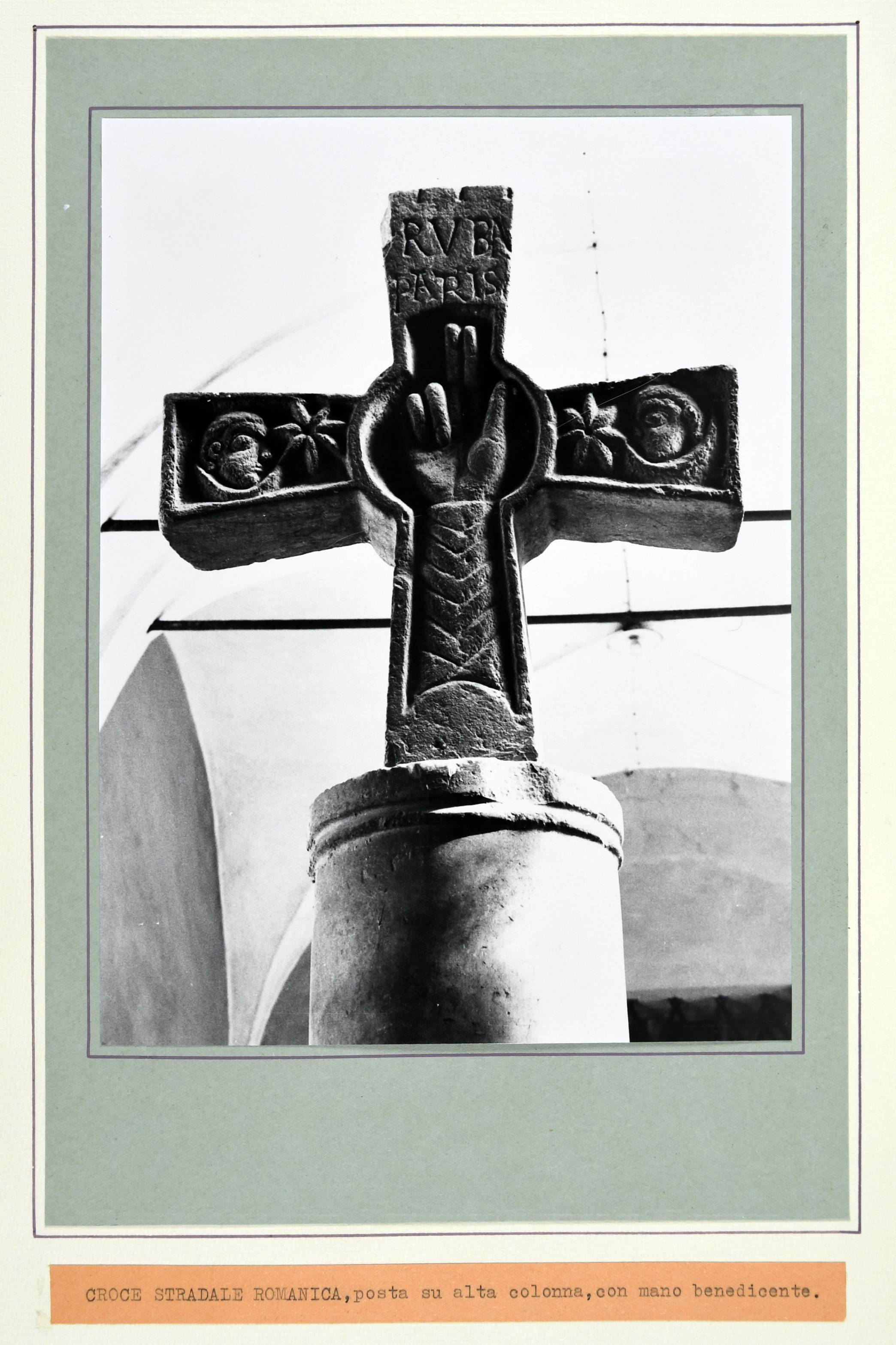 Titolo desunto da didascalia dattiloscritta: "CROCE STRADALE ROMANICA, posta su alta colonna, con mano benedicente."