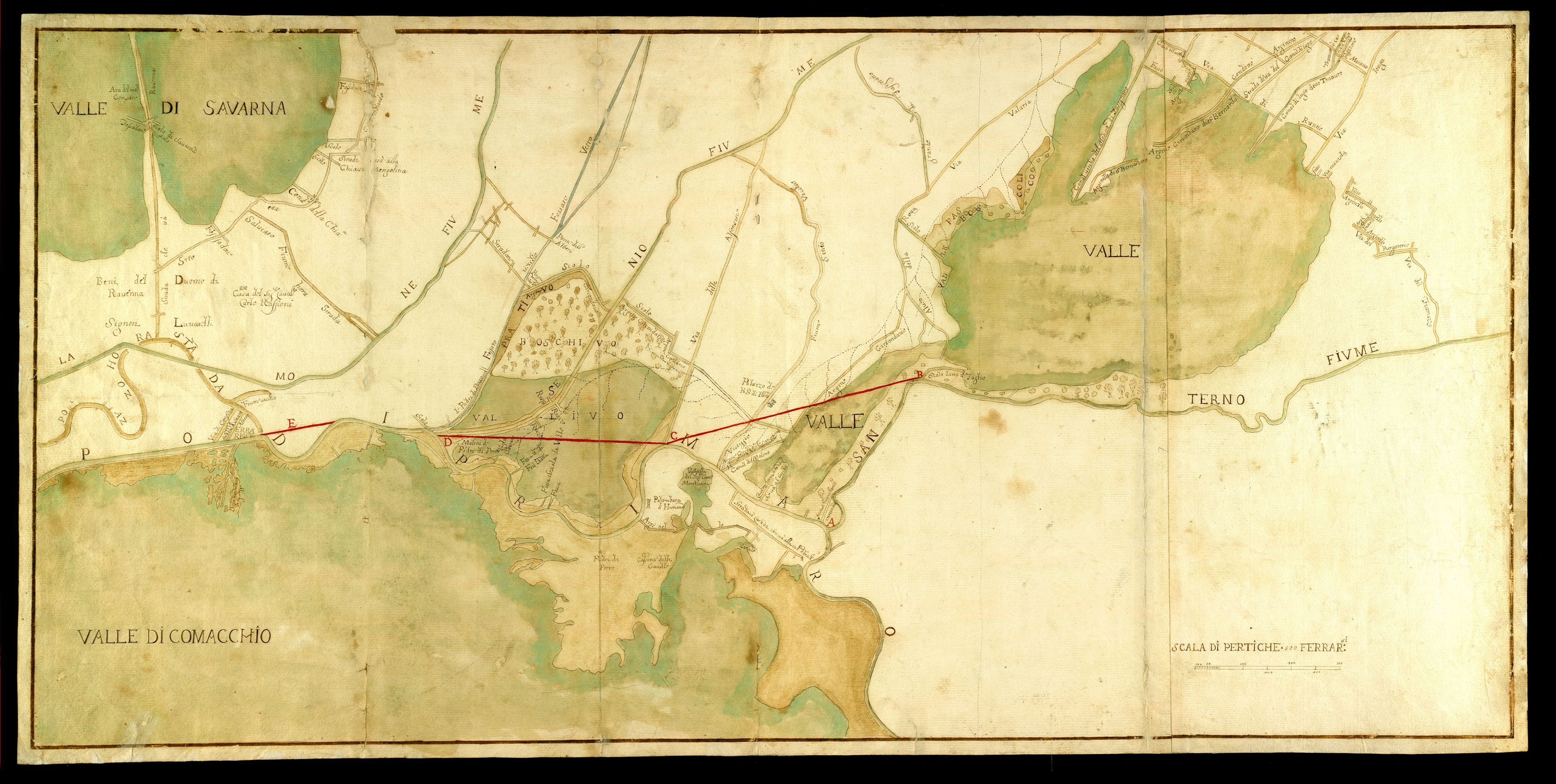 (Valle di Savarna. Fiume Lamone. Fossato Vecchio. Fossato Vetro. Fiume Senio. Via delle Alfonsine. Fiume Senio vecchio. Via Valaria. Valli. Fiume Santerno. Umana. Valli di Comacchio).