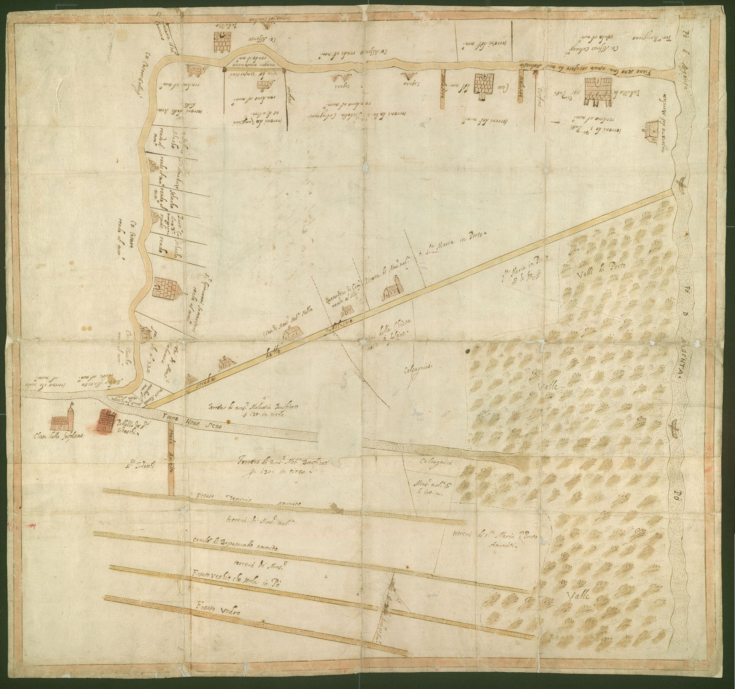 (Po di Argenta. Fiume Senio vecchio. Fiume Senio nuovo, chiesa di Alfonsine, Palazzo de' Sig.ri Todeschi. Strada di Alfonsine. Valle di Porto).