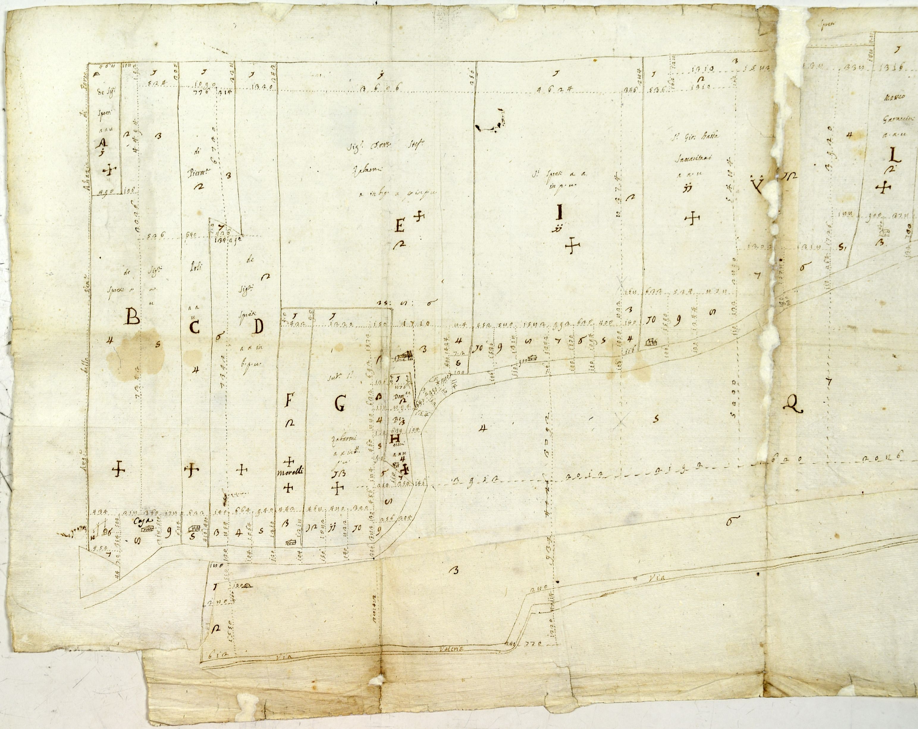 Mappa del corso della strada del Passetto dai beni dell'abbazia di Porto fino alla possessione Garavini e parte delle due strada Valeria e Reale.