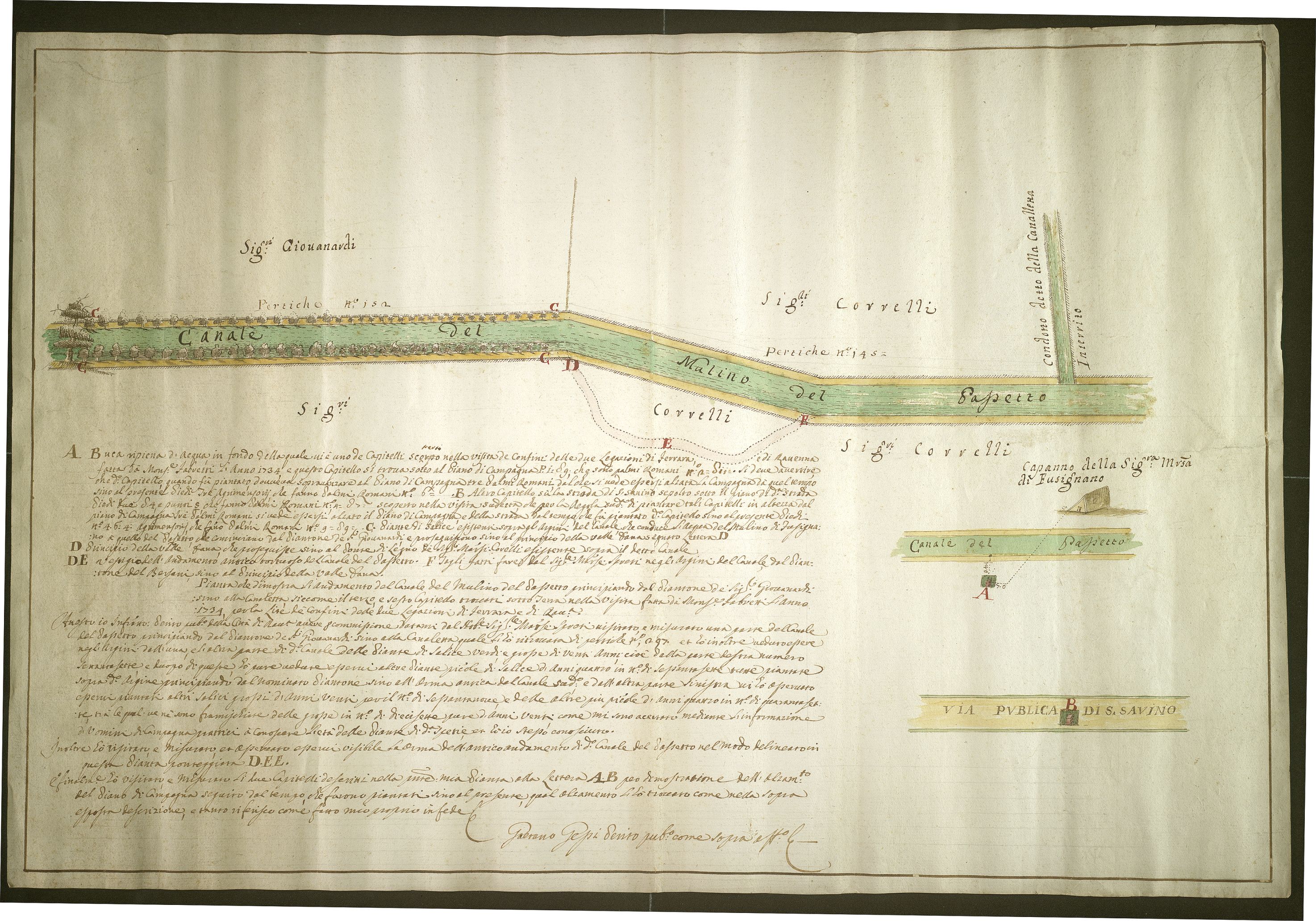 Sul verso: “Canale del Molino del Passetto nella Causa Giovanardi di Fusignano coll'abbazia di Porto”.