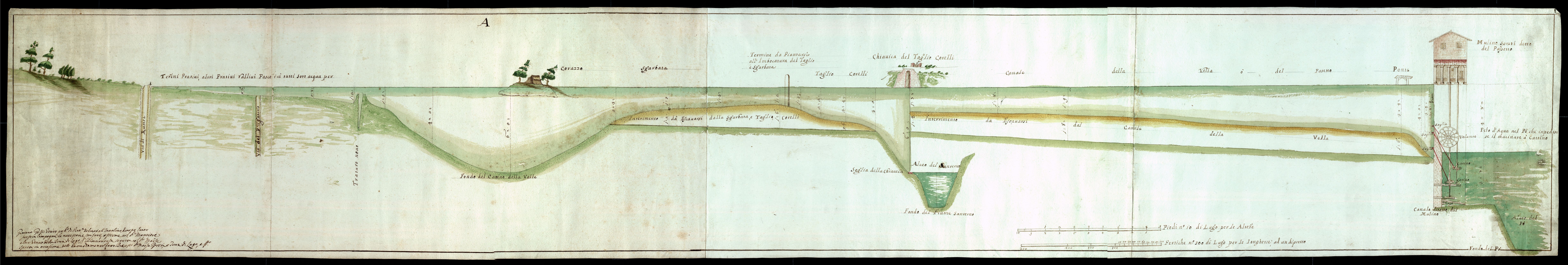 Profilo di livellazione del Canal della Vela dalla Via Runzi al molino Spreti del Passetto.