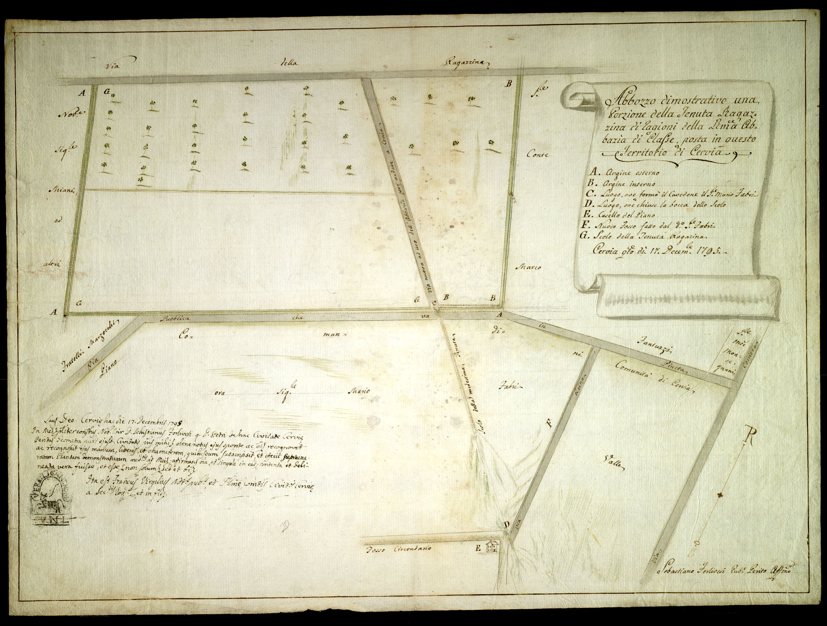 Abbozzo dimostrativo di una porzione della tenuta Ragazzina di ragioni della R.ma Abbazia di Classe.