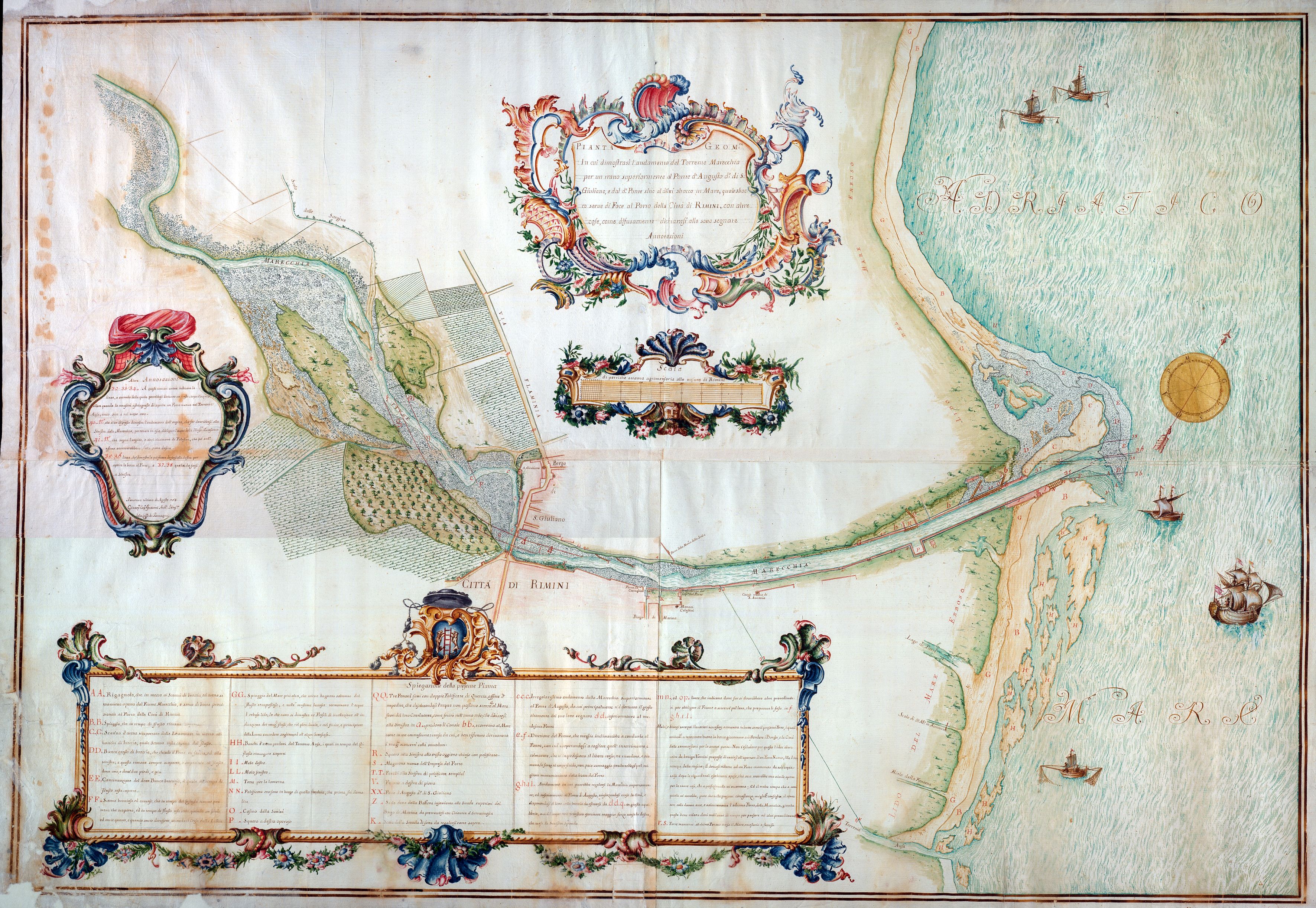 Pianta geometrica in cui si dimostrasi l'andamento del torrente Marecchia per un tratto superiormente al Ponte di Augusto detto di S.Giuliano e da detto ponte sino al di lui sbocco in mare quale sbocco serve di foce alla città di Rimini etc.