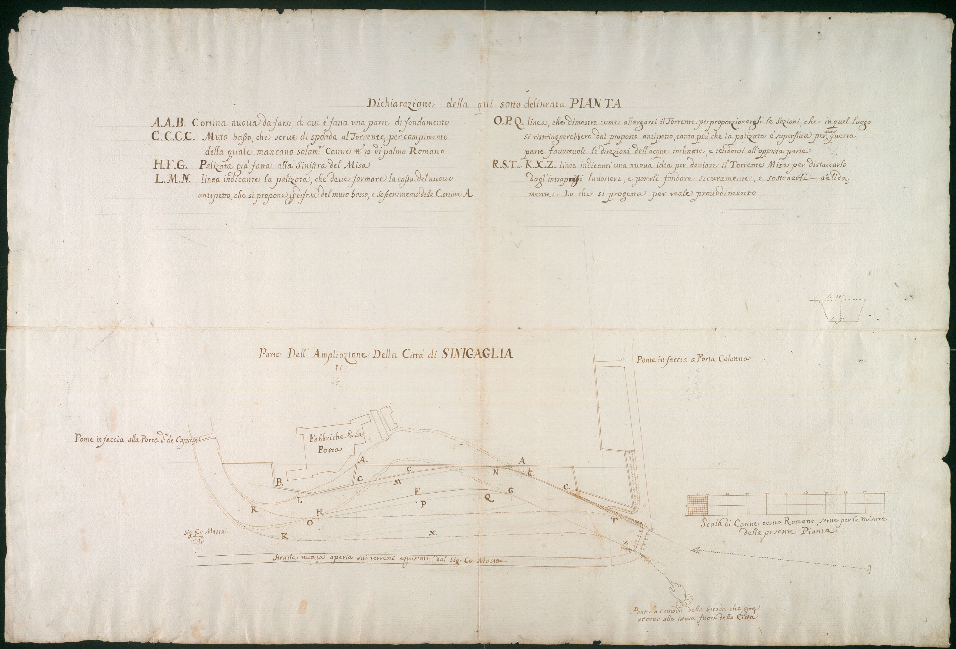 Pianta della chiavica e altri lavori da farsi sul torrente Misa nelle vicinanze di Senigallia.