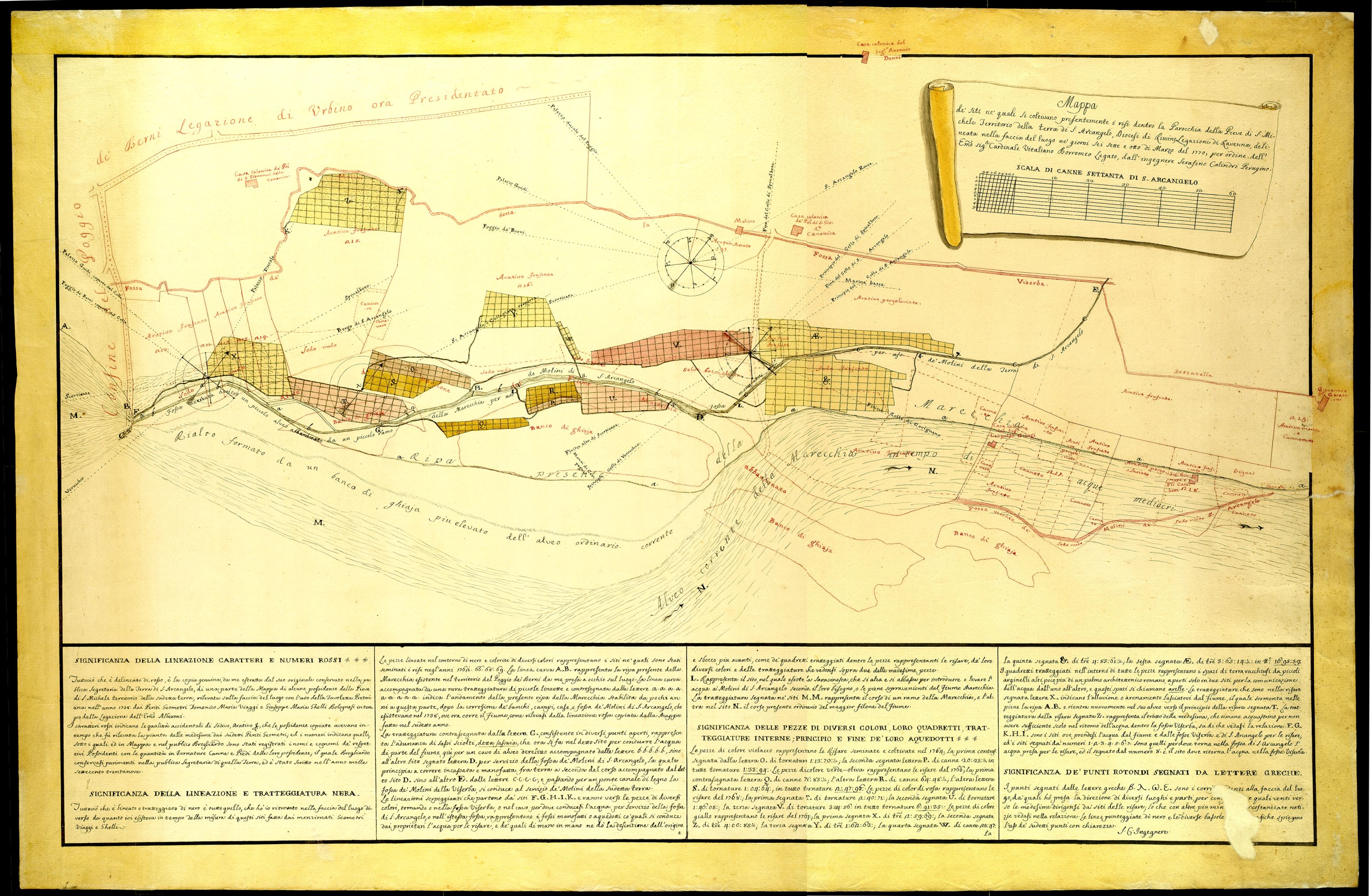 Mappa dei siti ne' quali si coltivano presentemente i risi dentro la parocchia della Pieve di S. Michele territorio della terra di S. Arcangelo diocesi di Rimino Legazione di Ravenna.