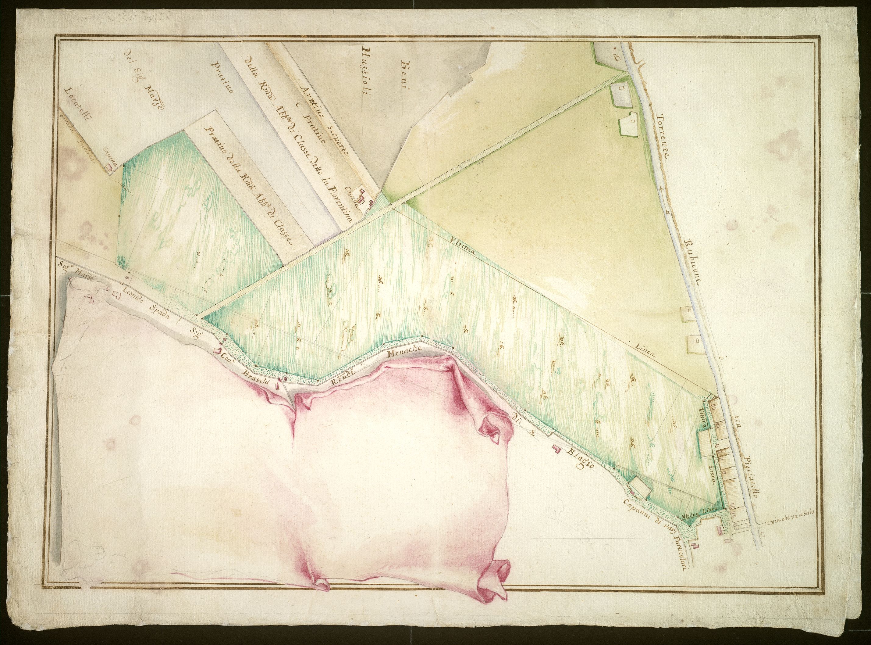 (Torrente Rubicone ossia Pisciatello. Beni Mustioli. La Fiorentina di Classe, Prati di Classe, Cascina Lovatelli, Beni Spada e Braschi e delle monache di S. Biagio.)