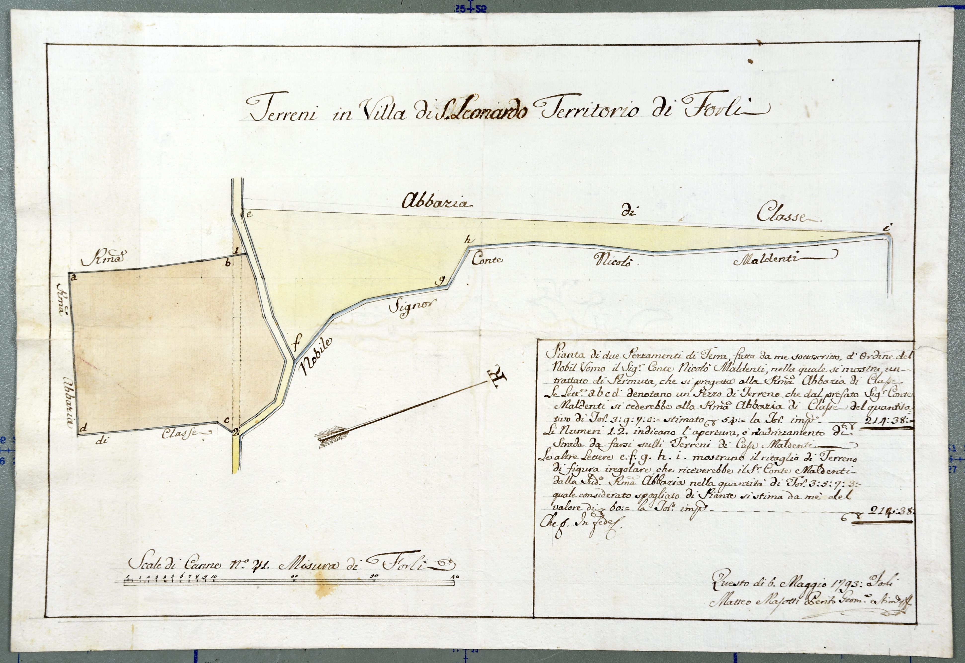Terreni in villa di S. Leonardo territorio di Forli (dell'abbazia di Classe e del conte Nicolò Maldenti).