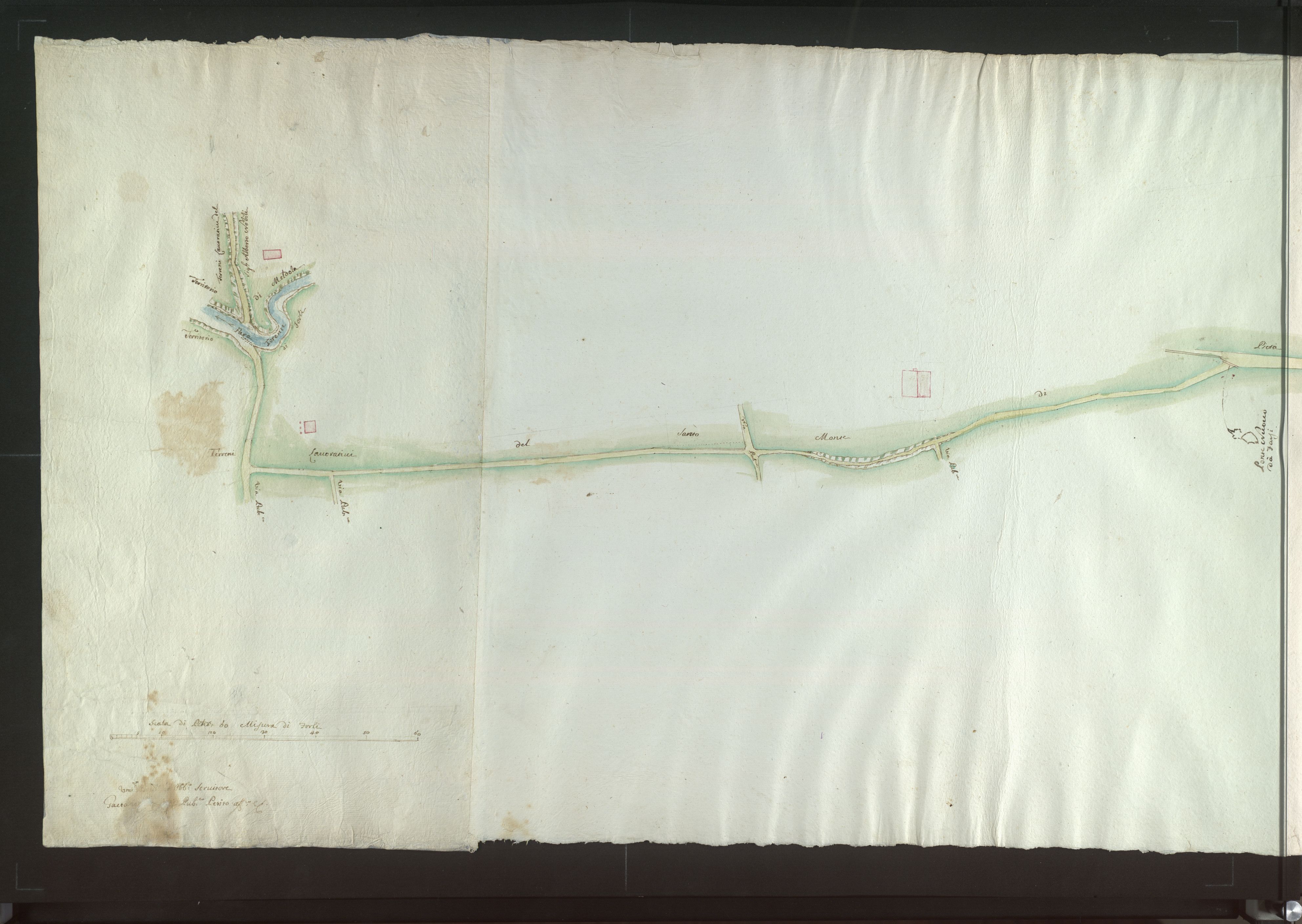 Tracciato della strada da Porta Ravaldino di Forli fino a Meldola con i possedimenti confinanti.