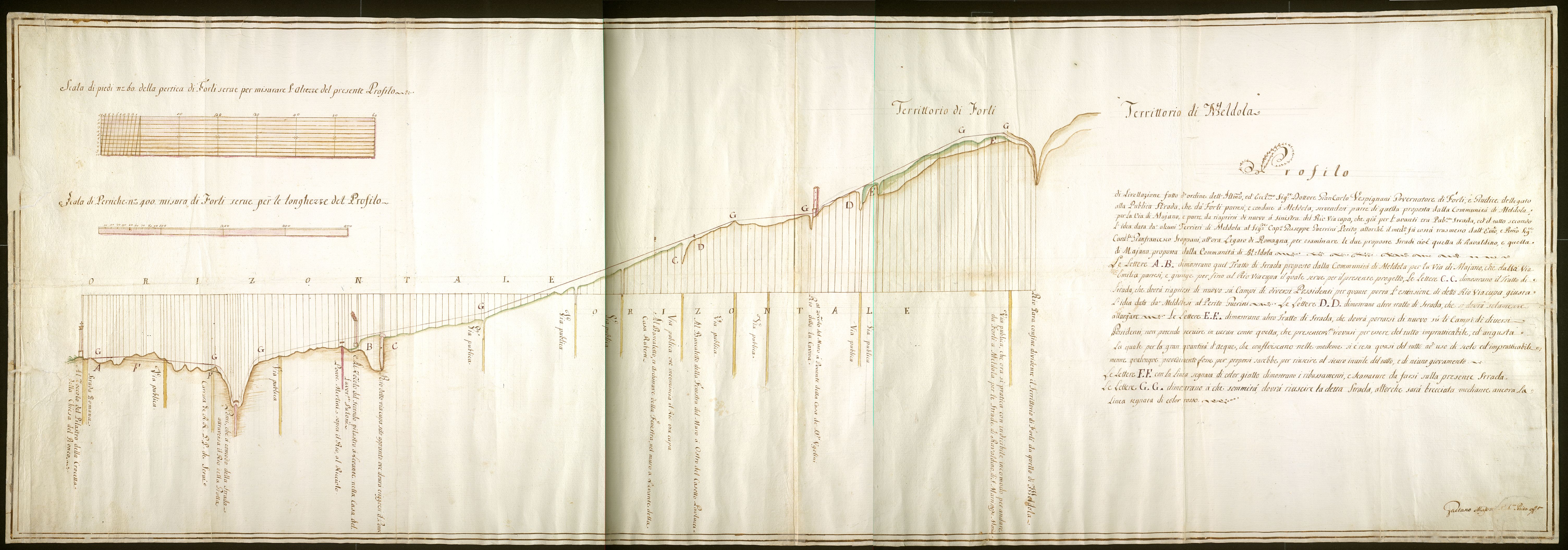 Profilo di livellazione della strada da Forli a Meldola per Maiano in contesa con l'altra linea di Ravaldino.