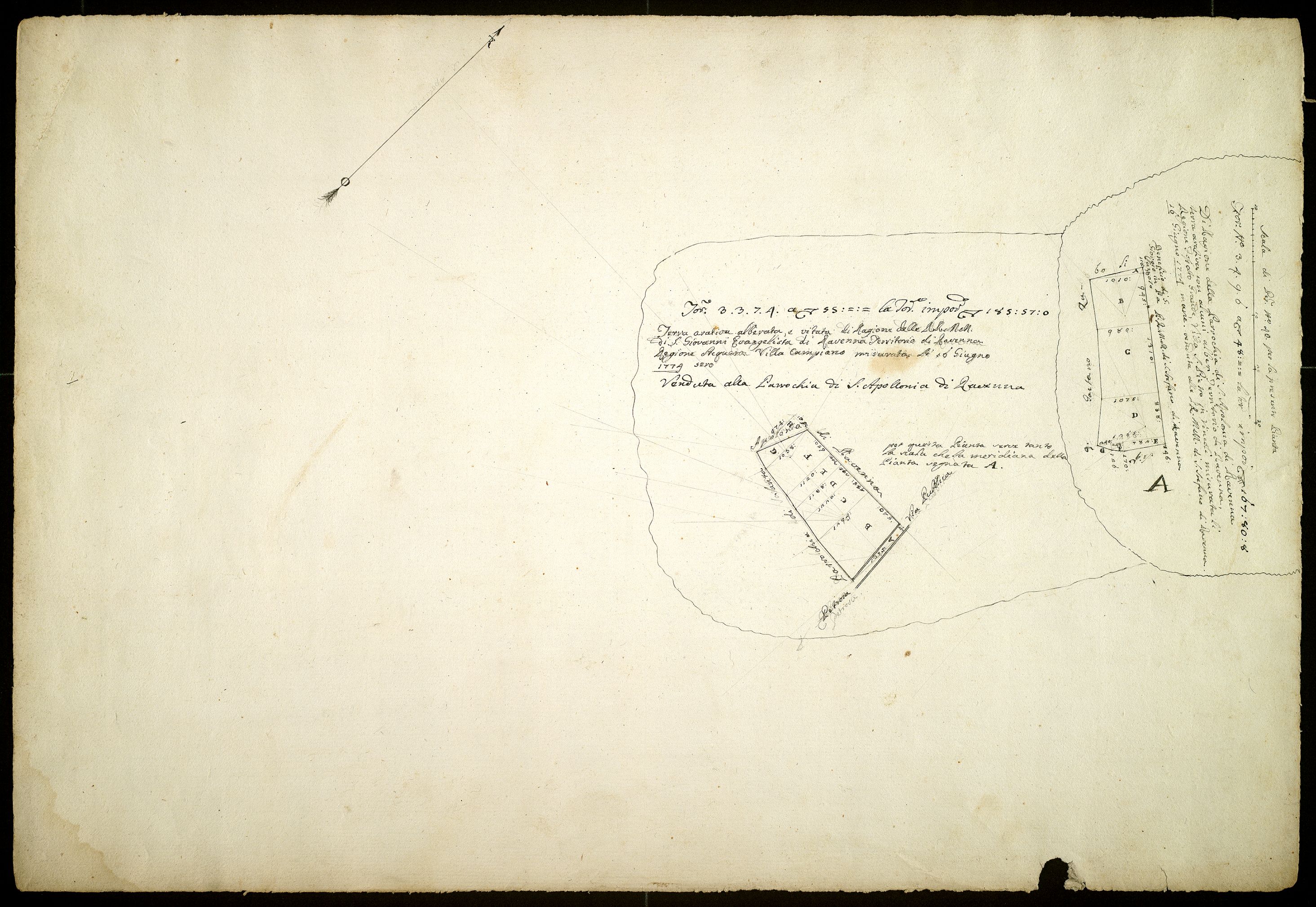 Pianta di un podere Farini in Cortina, e delle monache di S. Giovanni Evang. in Campiano.