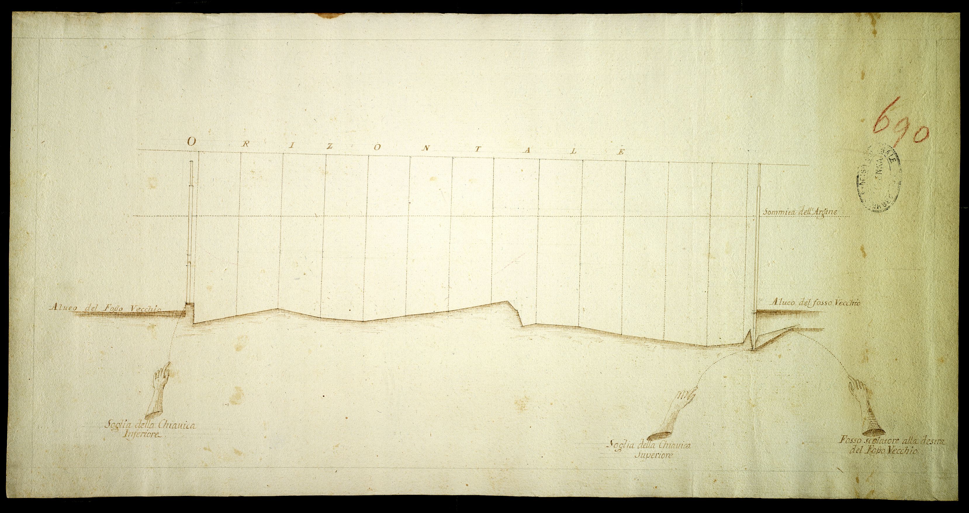 Profilo di livellazione del Fosso Vecchio fino alla chiavica che mette nel fiume Senio.
