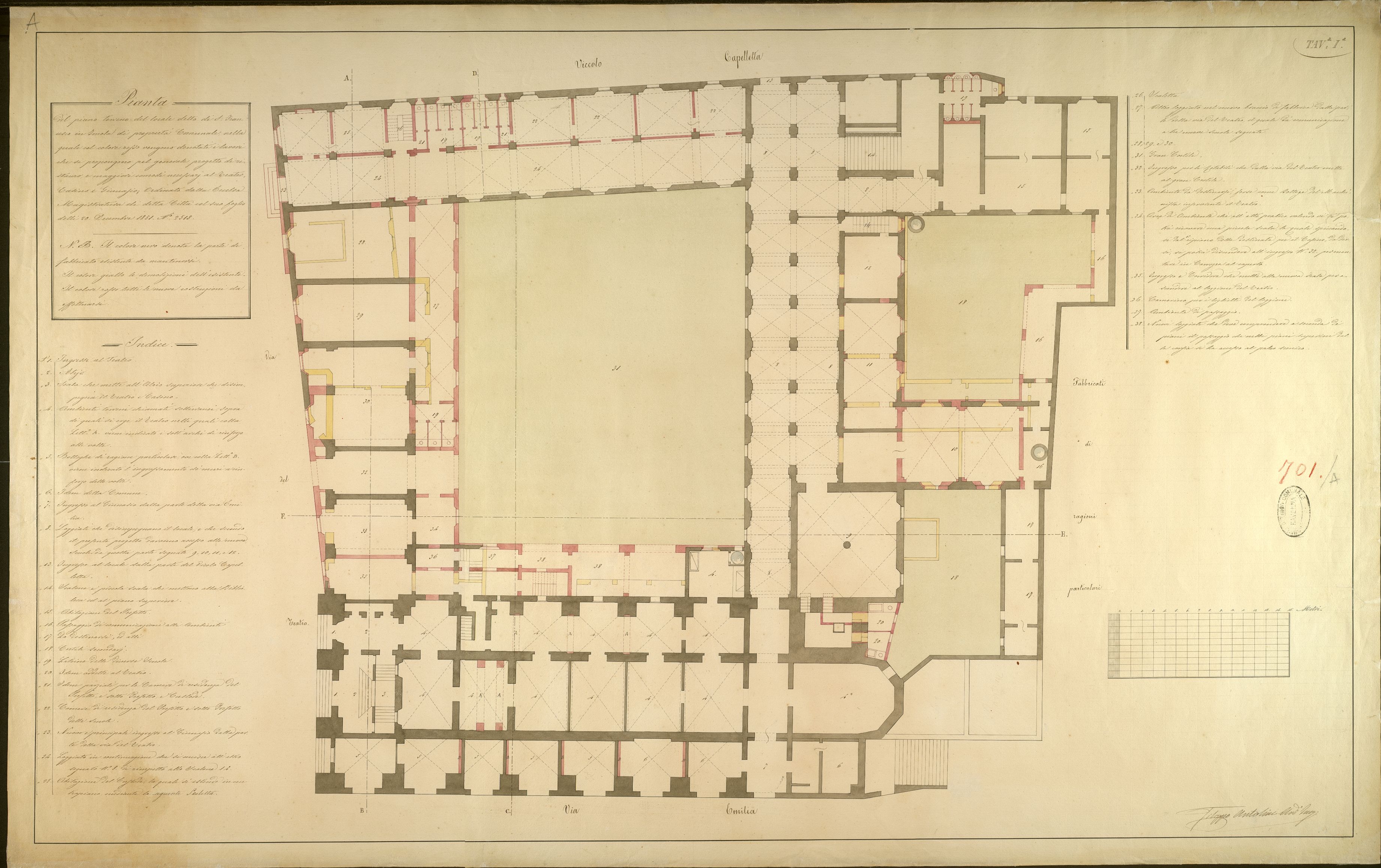 Due piante del pianterreno e del primo piano del locale detto di S. Francesco in Imola di proprietà comunale col progetto dei lavori da farsi per un restauro e ampliamento del Teatro, Casino e Ginnasio.