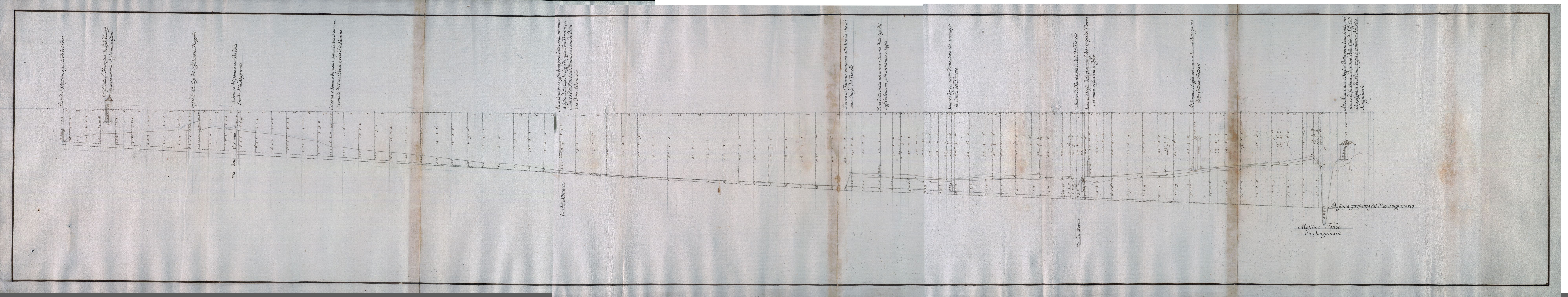 Profilo di livellazione del Rio Fantino dal Ponte di S. Sebastiano sopra la via del pozzo fino al Rio Sanguinario.